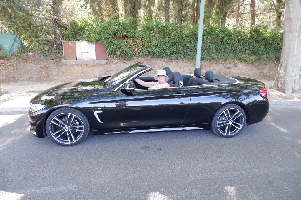 The trip took under 40 minutes. The shuttle bus arrived in about 10 minutes and took us to the main terminal. We soon found the Europcar office. The office seemed to be quiet and there were only 2 or 3 people ahead of us being served. We were attended to by Lilian (a very helpful young man). Inadvertently, our booking somehow defaulted to selecting a ‘manual’ car. Having had the nightmare of a left hand drive manual car once before, we wanted to change the booking to an automatic transmission. In Europe, the norm for rental cars seems to be manual gearbox. But, of course, an auto was going to be an ‘upgrade’! Equally, having a navigation package was yet another upgrade. Then too, ‘no excess’, another upgrade. Finally, we were offered a new sporty ‘Mini’, but with our bulky, heavy luggage, that was never going to work!! The next upgrade was a huge jump but, in a classic “bugger it!” moment, we took the beautiful black BMW 420i M4 convertible!! It wasn’t such a bad choice really, as we drive a BMW at home and, apart from LH drive, it has exactly the same controls.