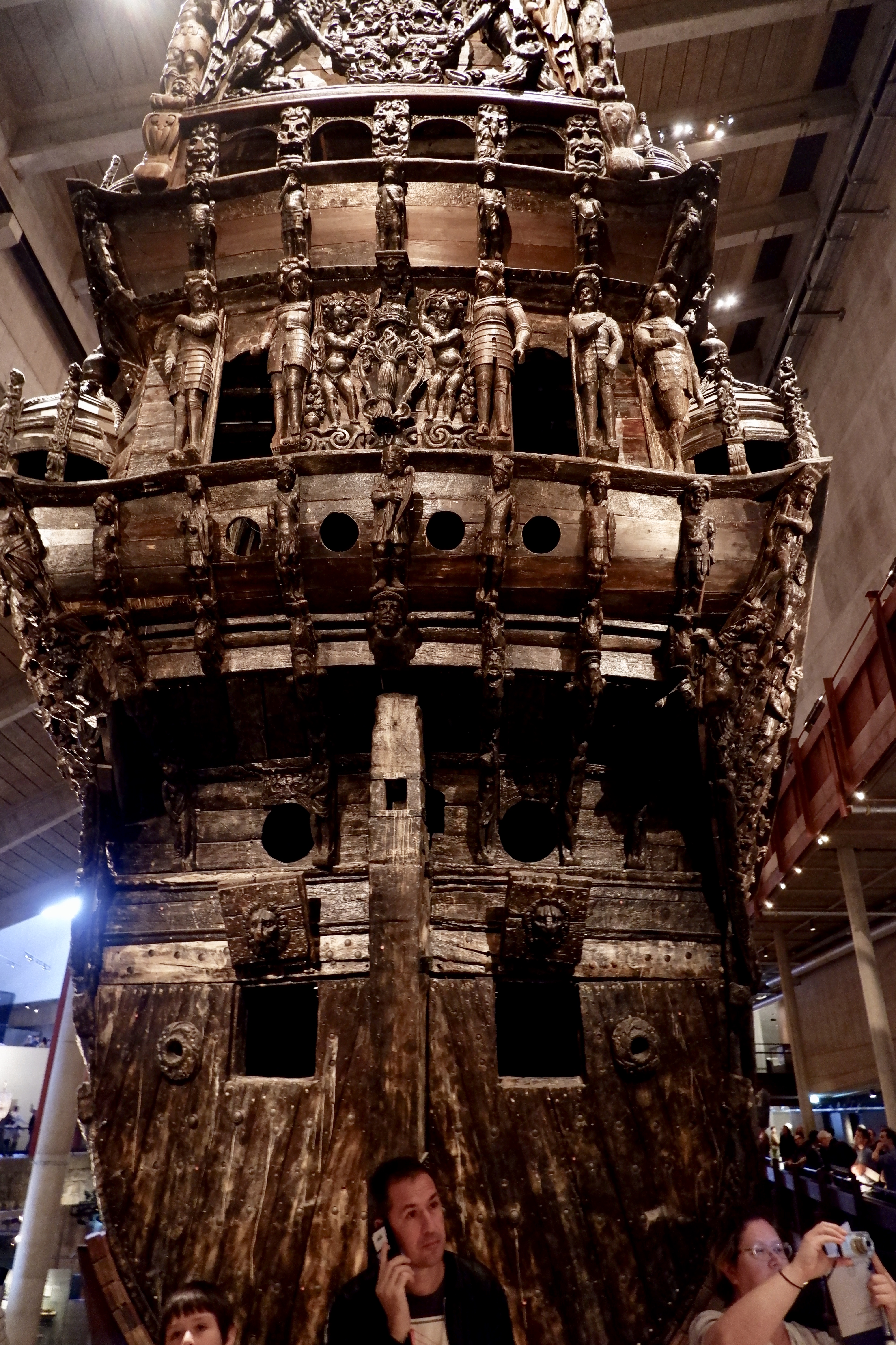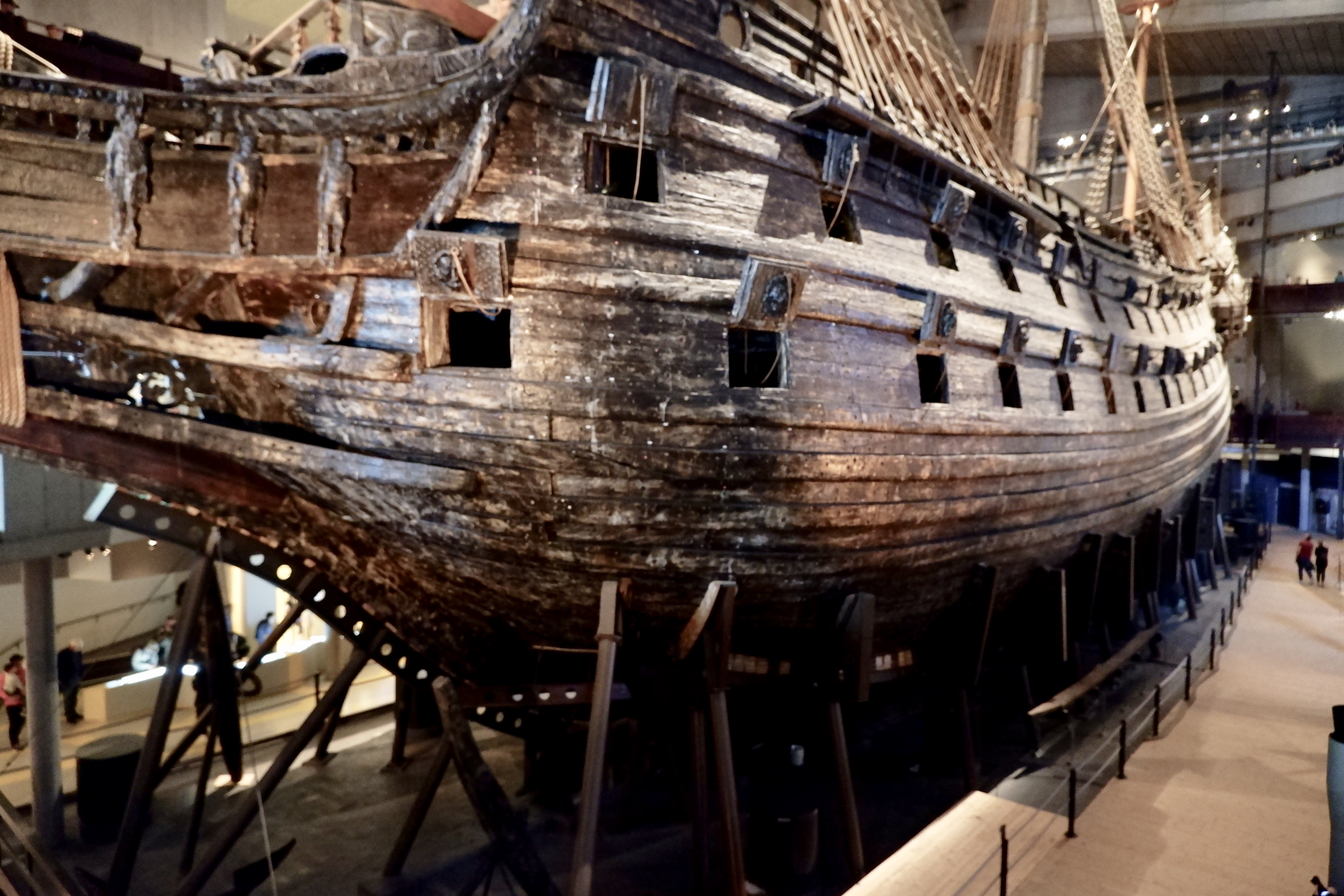 However, restaurants aside, class, culture and architecture aside, the most memorable, poignant and impressive experience for each of us in Stockholm was a visit to the Vasa Museum. The Vasa ship is the most completely and amazingly preserved Swedish warship from 1628. It sank on its maiden voyage, only 1500 metres from where it was launched. Sadly, to celebrate its construction and in gratitude to the workers, it was crowded with families, women and children as well as officials. All the gun ports were open. A gust of wind caused it to heel over. Perhaps it had insufficient ballast to keep it upright. Whatever the explanation, water flooded in through the open gun ports and the ship sank with all on board. It is said that a fleet of spectator boats rescued many of the survivors. But some, well below decks, never escaped. Their skeletons are on display in the museum, many with amazing life-like facial reconstructions allowing us to look into their eyes. There were shoes, personal items and fragments of clothing, all remarkably preserved in the anaerobic environment on the seabed. The ship was rediscovered in 1951 and was re-floated (yes, actually re-floated!) in an amazing engineering feat that took place in the 1960’s. It has taken many decades of careful preservation and intense marine archaeological research to get it to where it stands today. It truly is one of the archaeological wonders of the world. It truly is a must-see for anyone visiting Sweden.