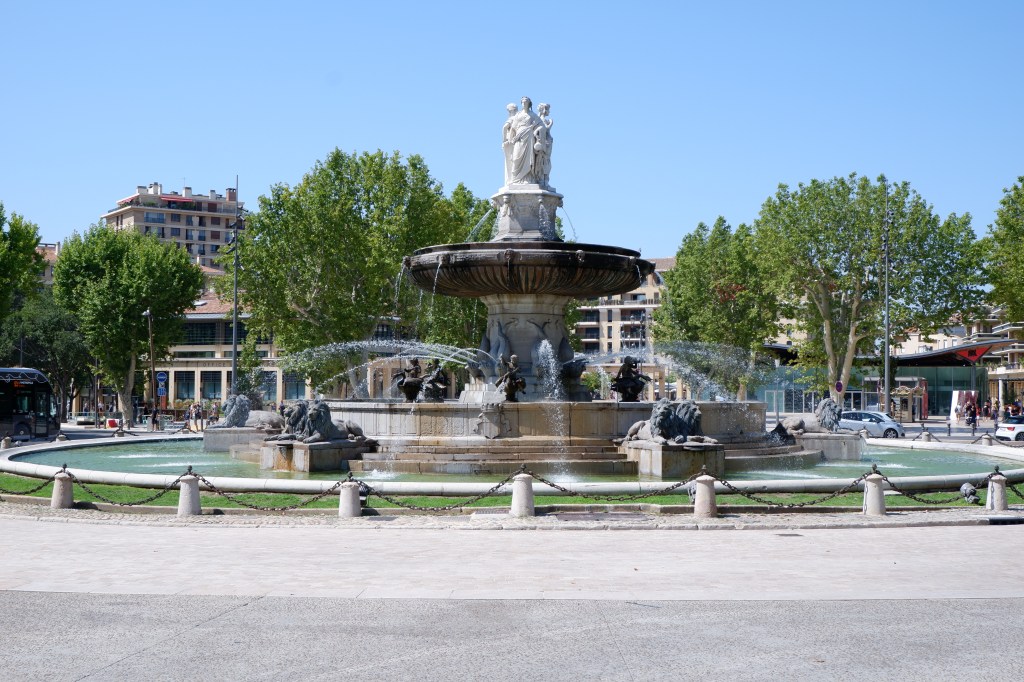 We programmed the navigation (with some difficulty!) to take us to Aix en Provence. It wasn’t an entirely successful programming as it kept wanting to default to an unwanted series of ‘Aix’s’. In frustration, we eventually gave in and selected one of them. It proved to be to the local airport!! Nevertheless, we eventually made our way to the outskirts of Aix en Provence. But where to from there? We followed signs to the centre of Aix ‘Ville’. Only by chance, near the centre, we saw a sign to an underground parking lot. Down we went! The downward winding passageways were impossibly narrow and obviously not intended for such a large car as we’d extravagantly chosen! Added to that, it was quite full and there were almost no vacant spaces. Even to call them ‘spaces’ at all is something of a misnomer. They were all barely wider than a small average car and if someone parked crookedly or had encroached on your space, you couldn’t possibly fit into them anyway! Finally, we found one wide enough.