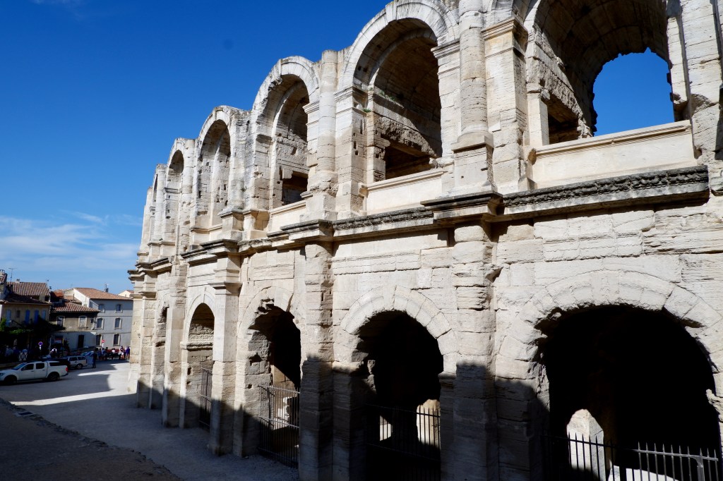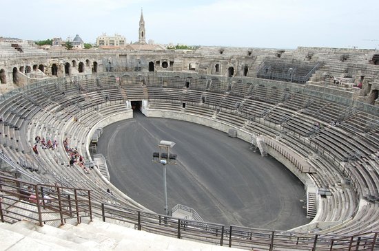 I had chosen Arles as a base primarily for its proximity to the Roman antiquities that Barry loves so much. Today as we headed off for the forty five minute drive to Nimes, I had no real preconceptions. I knew that like Arles they had relics of an arena and a temple, if not much else. Boy was I in for a surprise. First of all it is a thriving city, more reminiscent of Paris on a smaller scale than the village-like atmosphere of Arles. Then, of course, there were the ‘relics’. The amphitheater in Nimes is the most intact Roman arena in the world, 20 metres high, and still used for concerts and bull fights. Although banned in Spain, bull fighting is still enthusiastically pursued in France. It has been deemed a cultural tradition and no amount of protest from animal rights enthusiasts has changed the opinion of government or the general population. We spent some time at the arena and discovered many interesting facts about the gladiators that neither of us had previously been aware of. This trip, like all international travel, has proved educational in so many different ways.