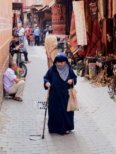 We were told that Marrakech has about 20,000 motorcycles. That has to be an under estimate! Everyone, kids, teenagers, wizened old guys, women in full chador and sometimes WHOLE families, flash past you atop mopeds, scooters and step-throughs of all kinds! To say the traffic here is chaotic goes nowhere close to describing it. The worst part for us is walking through crowded alleys with the aforementioned motorised traffic, going in both directions, weaving between unconcerned local pedestrians. We were the exception – we were very concerned pedestrians (sometimes terrified!).