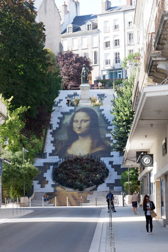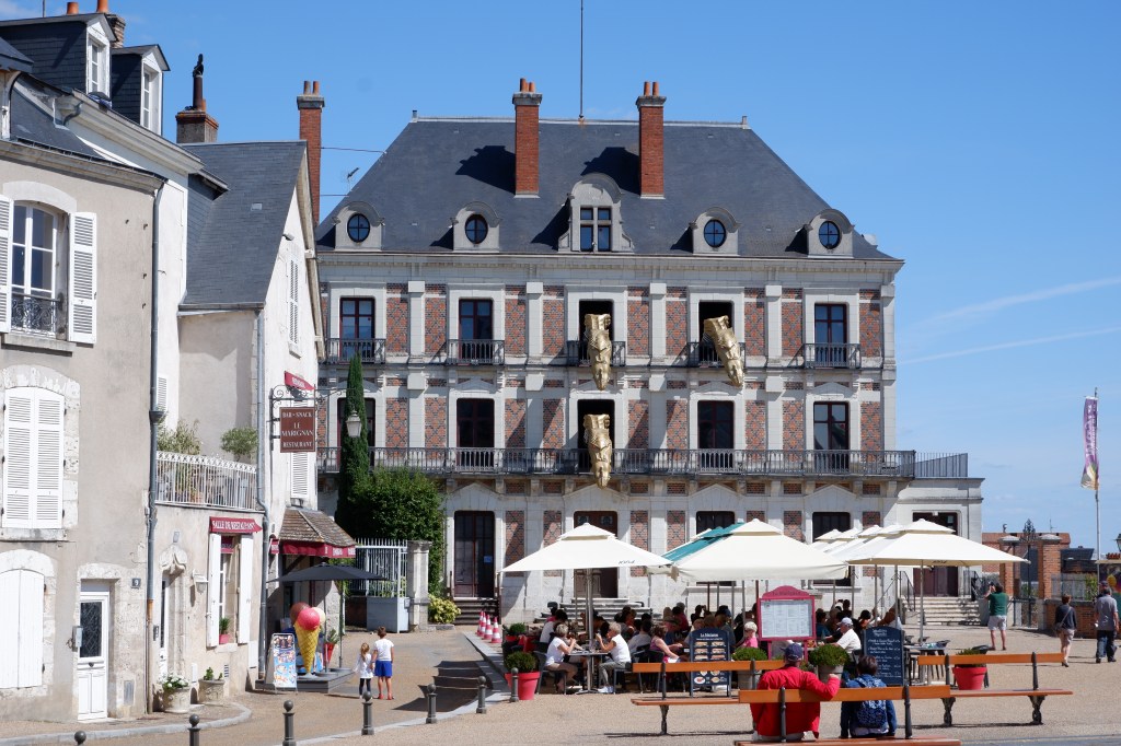 The roads to and from Chambord to Blois were extraordinarily picturesque in the French way. In other words, through quaint villages, there was often barely room for two cars to pass, and occasionally not enough room at all! But we had planned to have dinner in Blois on two of our three evenings. On the first evening, we followed the car navigation slavishly … until it instructed us to go where the local automated bollards prevented us going! The only two options ahead of us at that point were each ONE WAY but not our way! Somehow we managed to turn around and by amazing luck, found a tiny parking place on the street that we literally squeezed into. The restaurant was only a few minutes walk. As we went there, we passed the restaurant we’d booked for our second dinner, so we knew where it was.