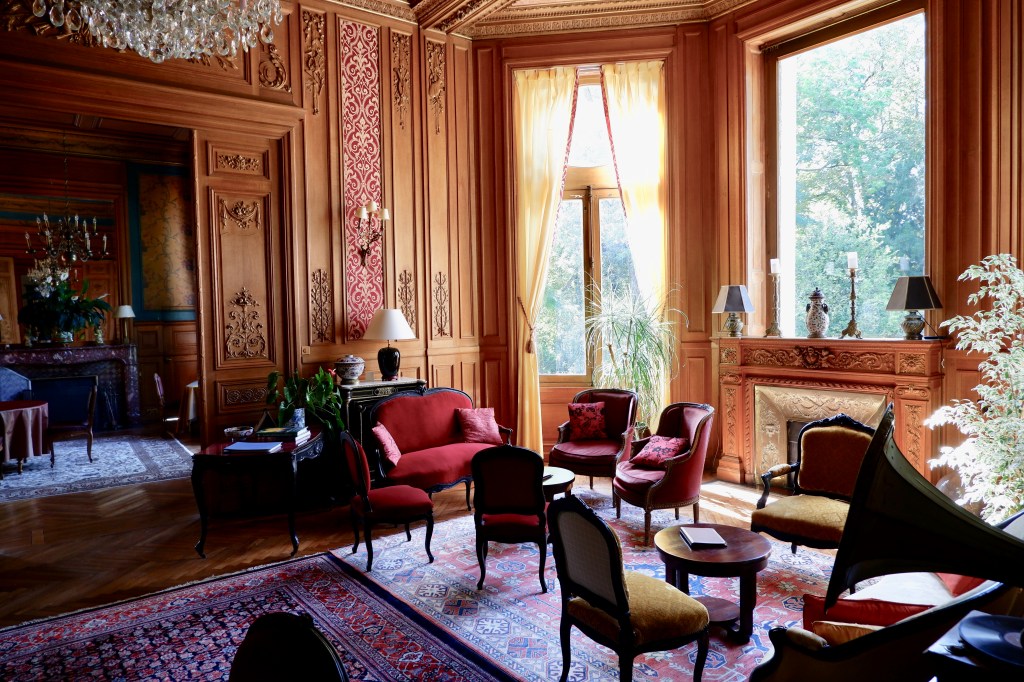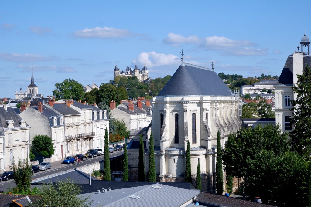 After Chateau Noizay, the Chateau De Verrieres was truly magnificent! With wood panelled salons, marble fireplaces, original artworks, antique writing desks, Persian carpets and the most ornate heavy oak winding staircase that I’ve ever seen, The grounds, just like the interior, were immaculately maintained. The staff, too, were absolutely charming and welcoming, in complete contrast to what we’d had for the past three days. It was to become our favourite accommodation experience in France. The room we had was newly refurbished, large and impeccably furnished. It even had an air conditioner, albeit a portable unit. Best of all was the most astonishing view over Saumur’s Chateau, I could hardly pull myself away from the window!
