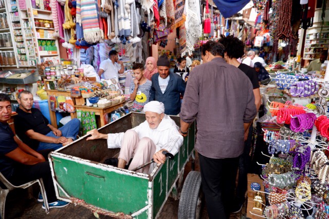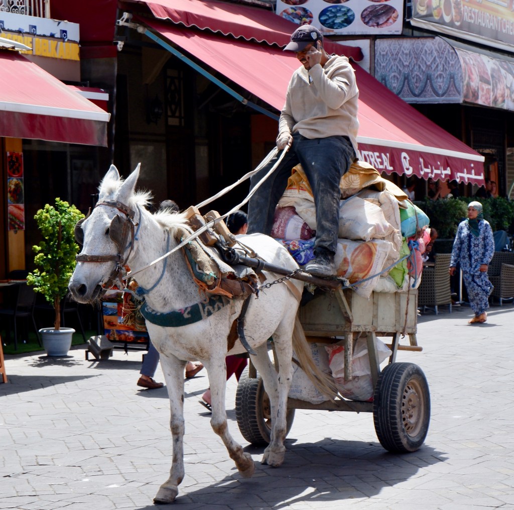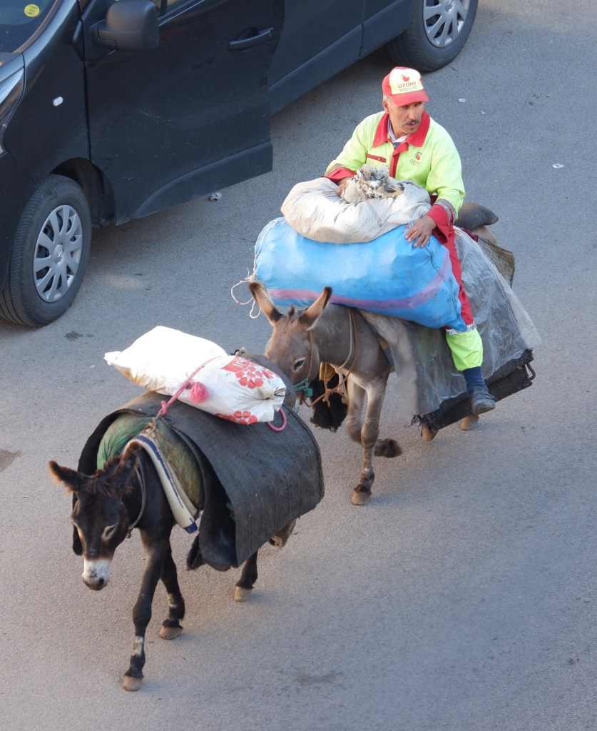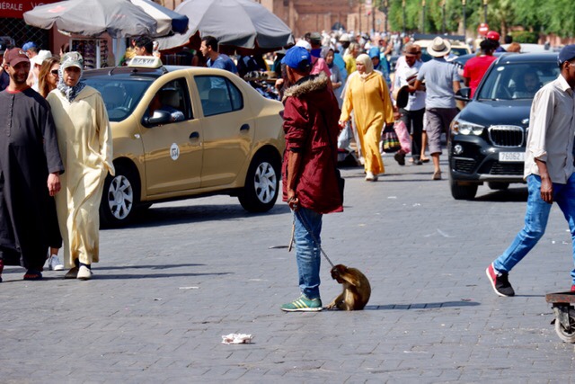 Wow! This was such a change from France! It’s a mix of India, the Middle East and Africa. Monkeys on leashes (poor little buggers) posing for photographs with tourists, snake charmers, musicians, ladies offering to henna hands, fortune tellers and food vendors all compete for space in the square. Refugees from Libya and Liberia trying to earn some money before attempting to reach Europe, pester tourists to buy sunglasses and African shirts. Poor scrawny donkeys overburdened with produce or building rubble and malnourished horses hooked up to coaches for tourists to ride around in, would make some of my animal-loving friends despair.