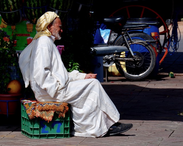 At the end of our week in Fes, we returned to Marrakech for two days. Our time in Morocco was nearing its end. We realised that we still had almost 1000 Dirham in cash, a currency that is utterly valueless outside Morocco. Even in Morocco, it’s value was questionable as there were some imported things you had to pay for in Euros. One Dirham was worth only 15 cents AUD. To add to the confusion, those shops or stalls that actually had price tags on things quoted either in Euros or Dirhams. At least then you had some idea of the value. But they were in the minority. Most traders cunningly waited for you to ask the cost, then they’d proffer a hugely inflated price expecting you would enter the ‘game’ and bargain with them. But not having any reference point to assess the true worth left you at a huge disadvantage. Truthfully though, there was nothing we really wanted to buy, except perhaps a few small gifts for friends or family.