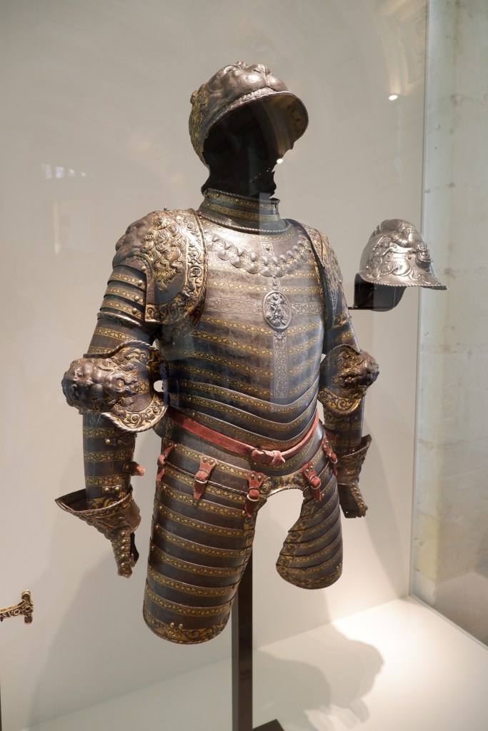 Chateau Chambord is by far the largest, grandest and most visited Chateau in the Loir Valley. The work of the stonemasons is a wonder of art and science. Begun in 1519 by Francoise 1st as a weekend hunting lodge, it quickly grew into the most ambitious and expensive architectural projects ever attempted by a French Monarch. Rising through the centre of the incredible structure, the world famous double-helix staircase, designed by Leonardo da Vinci, ascends to the great lantern tower and the rooftop. Leonardo had a fascination for the double-helix, though principally as a means of elevating water. The overall plan of the Chateau was designed on the King’s concept of chivalric principles, derived from his belief in the equality of the Knights of the Round Table. The four corner towers all had equal accommodation, including that of the king himself. Many works have been written on understanding the architecture of Chambord so any attempt of mine barely goes below the surface. One breathtaking item on display is the King’s absolutely magnificent suit of armour, manufactured in a Milan workshop in the 1500s. It’s dimensions reveal that the king must have been 6’6” tall, astounding for that time.