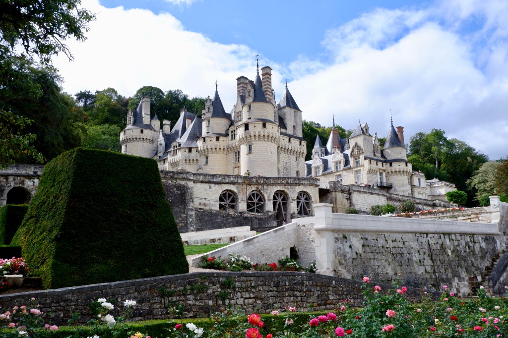 Our next stop was in Saumur, a two hour drive away. We breakfasted in Amboise one last time, then set off on our drive through the French countryside. On our way to Saumur, we stopped by Le Chateau d’Usse, the inspiration for Charles Perrault’s classic fairy tale, known in English as ‘Sleeping Beauty’. At first sight, emerging from the narrow winding village road (thankfully too narrow for tourist busses to navigate) the Chateau is spectacular. Creamy white towers and slate roofs jut out from the edge of the forest of Chinon and, as you get closer, absolutely glorious and well maintained garden areas surround it. Some people feel the co-opting of the fairy tale by way of stage sets with mannequins depicting various scenes from the story is a bit tacky, but I actually loved it. I clambered up the tower steps with excited little girls dressed up in their princess dresses and read aloud the English translation of the story before rushing up some very steep steps to the next floor to see what happened next. Getting to the top afforded sweeping views of the flat Loire countryside and the presently, all but dried up, Indre River.