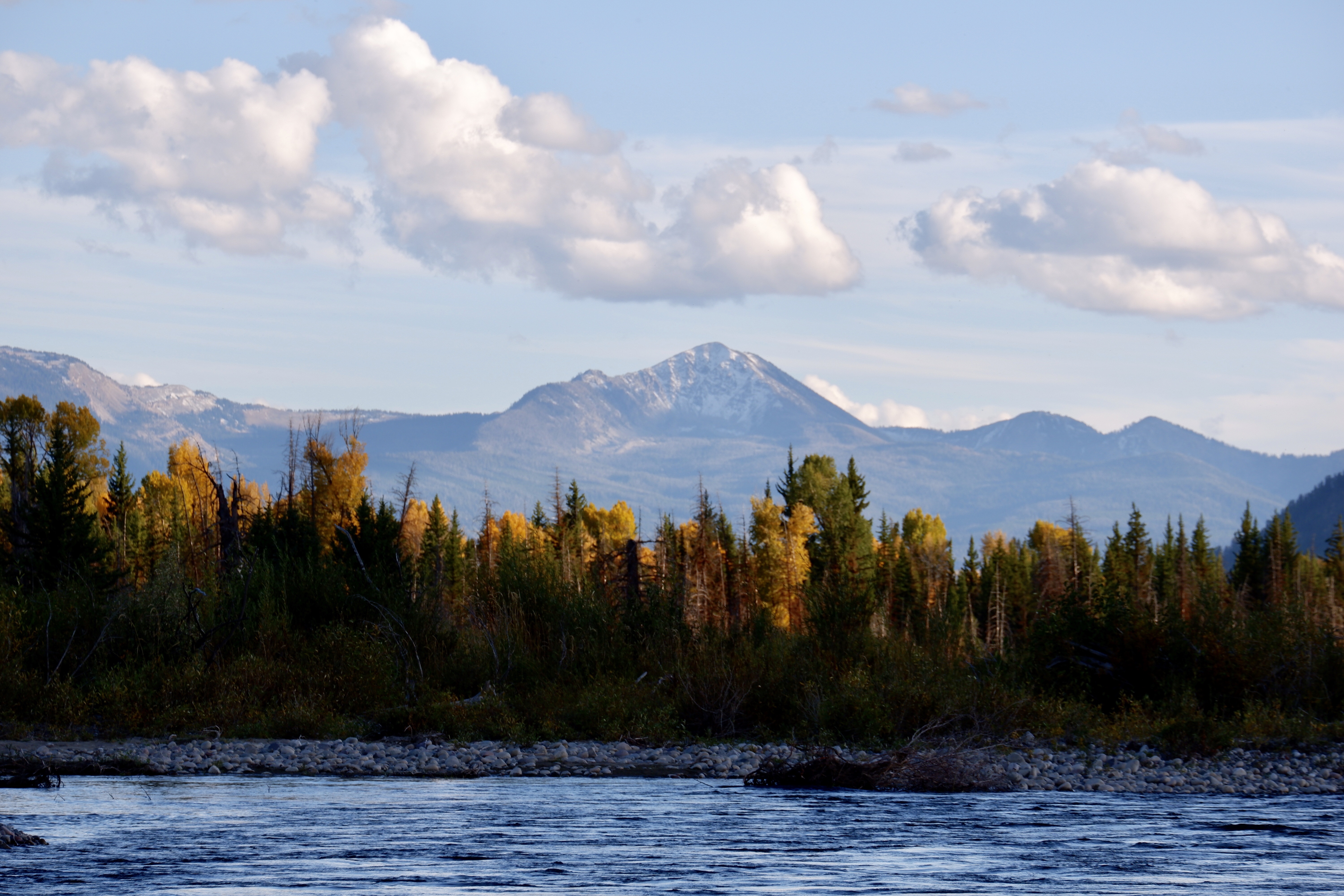 We booked for a 10 mile raft trip down the Snake river, a protected wilderness area. We were picked up at 4.30 pm as part of a group of 11 rafters, with Michael our raft guide. The rafting craft was a huge inflatable boat about 5 metres long and 3 metres wide. Michael stood amidships, controlling our river ‘descent’ with long oars, manoeuvring and steering the raft around rocks and fallen trees. The river is only about a metre deep, crystal clear, with a round, rock strewn bed, a legacy of the glacial past. The 10 miles was covered in just over 2 hours. Along the way, we had hoped to see some of the larger wildlife such as Elk or bears, but to no avail. However we did see bald eagles and other native birds. We saw trees dramatically gnawed away by beavers! It was as if they’d been ringbarked and one even looked as if an axeman had tried to fell it. But, as evening fell, so did the temperature. We were well ‘layered’ with warm clothes, over it all was a snug fitting life vest, further insulating us. Fortunately, while the river was fast flowing, it wasn’t a wet, white water experience, so we all stayed dry.