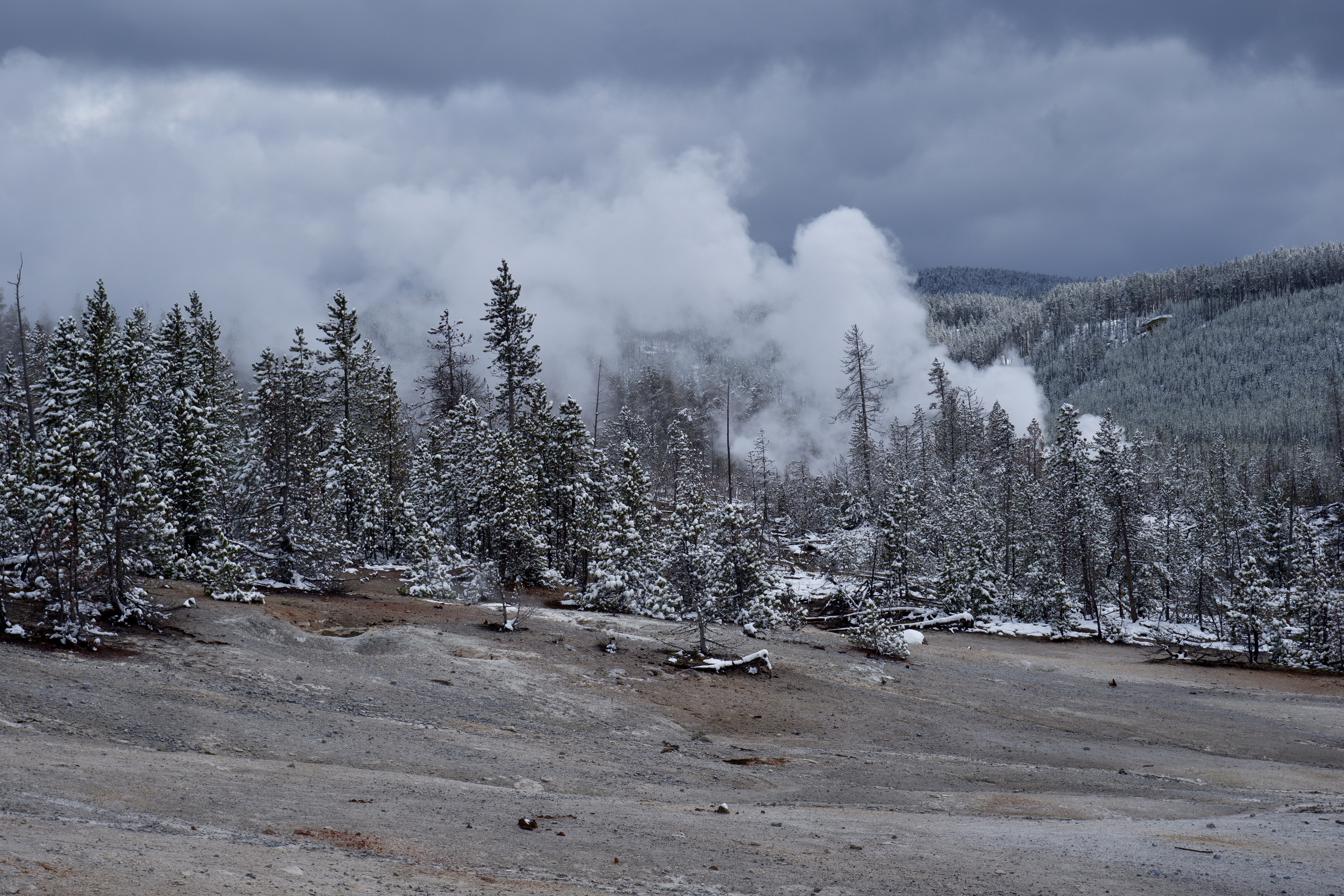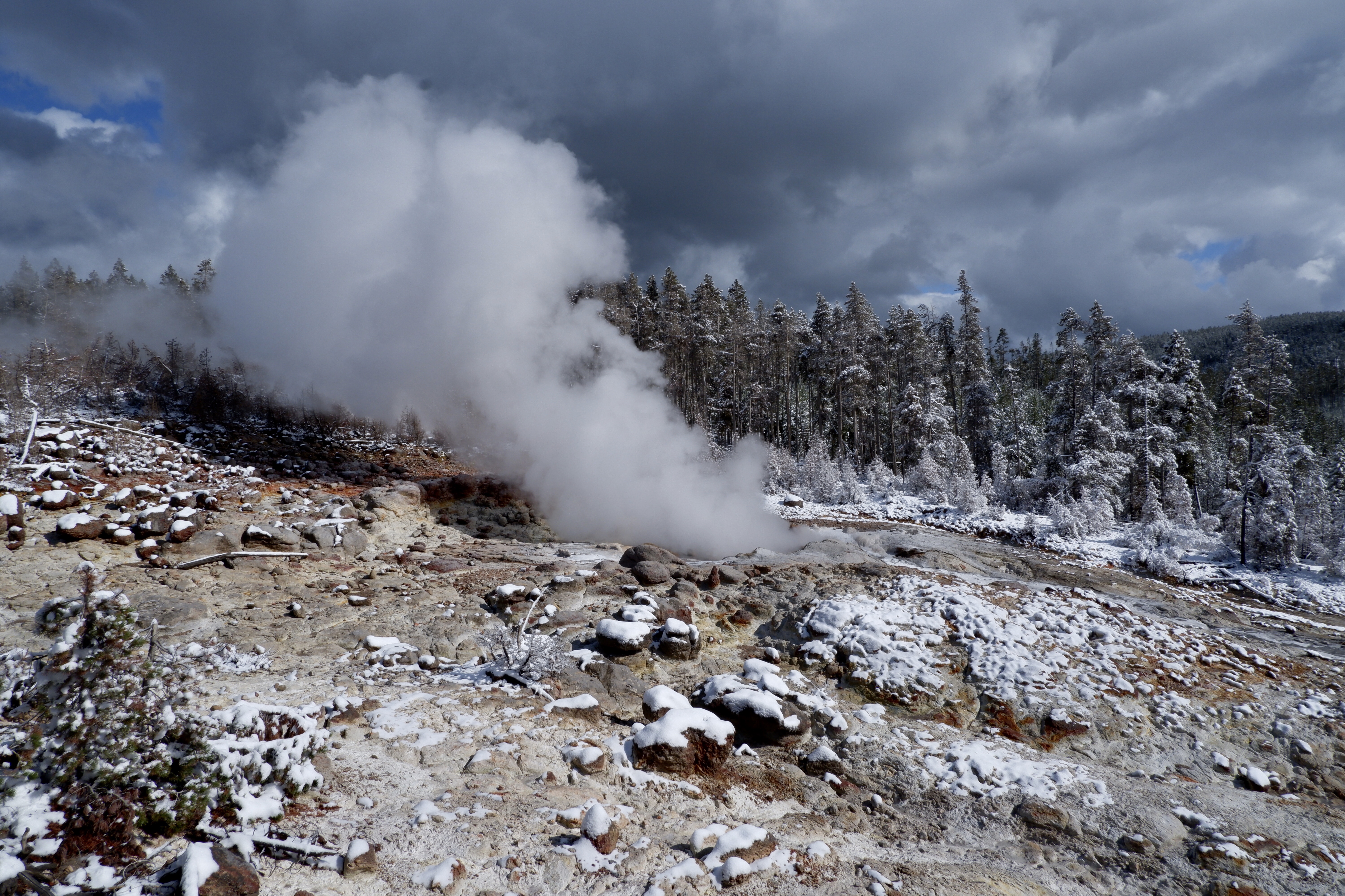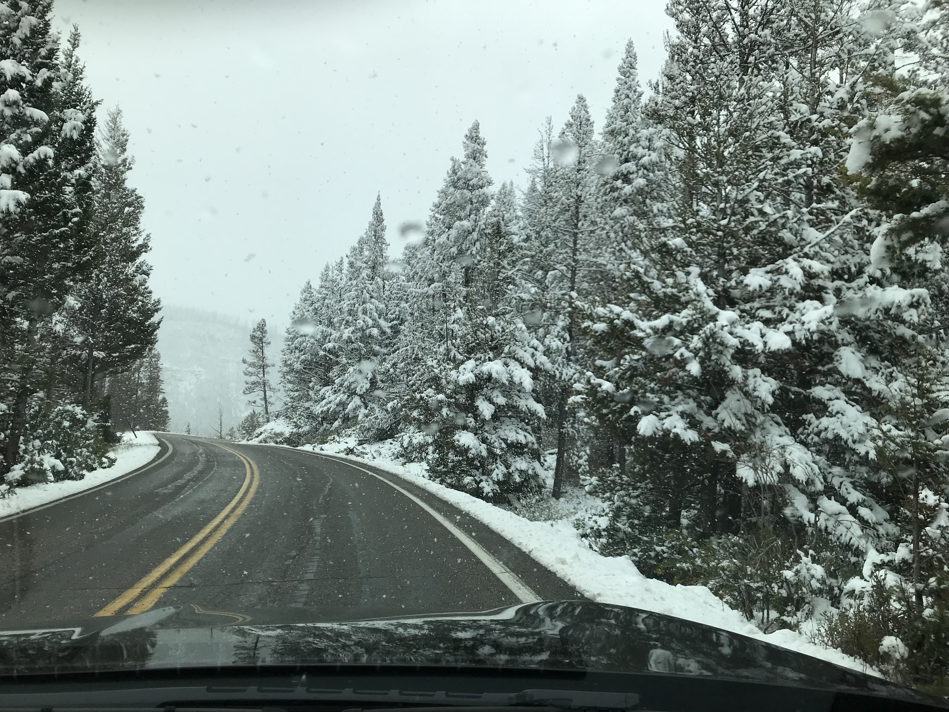 The Grand Tetons were indeed covered with a thick dusting of snow and so we headed off for Yellow Stone National Park.