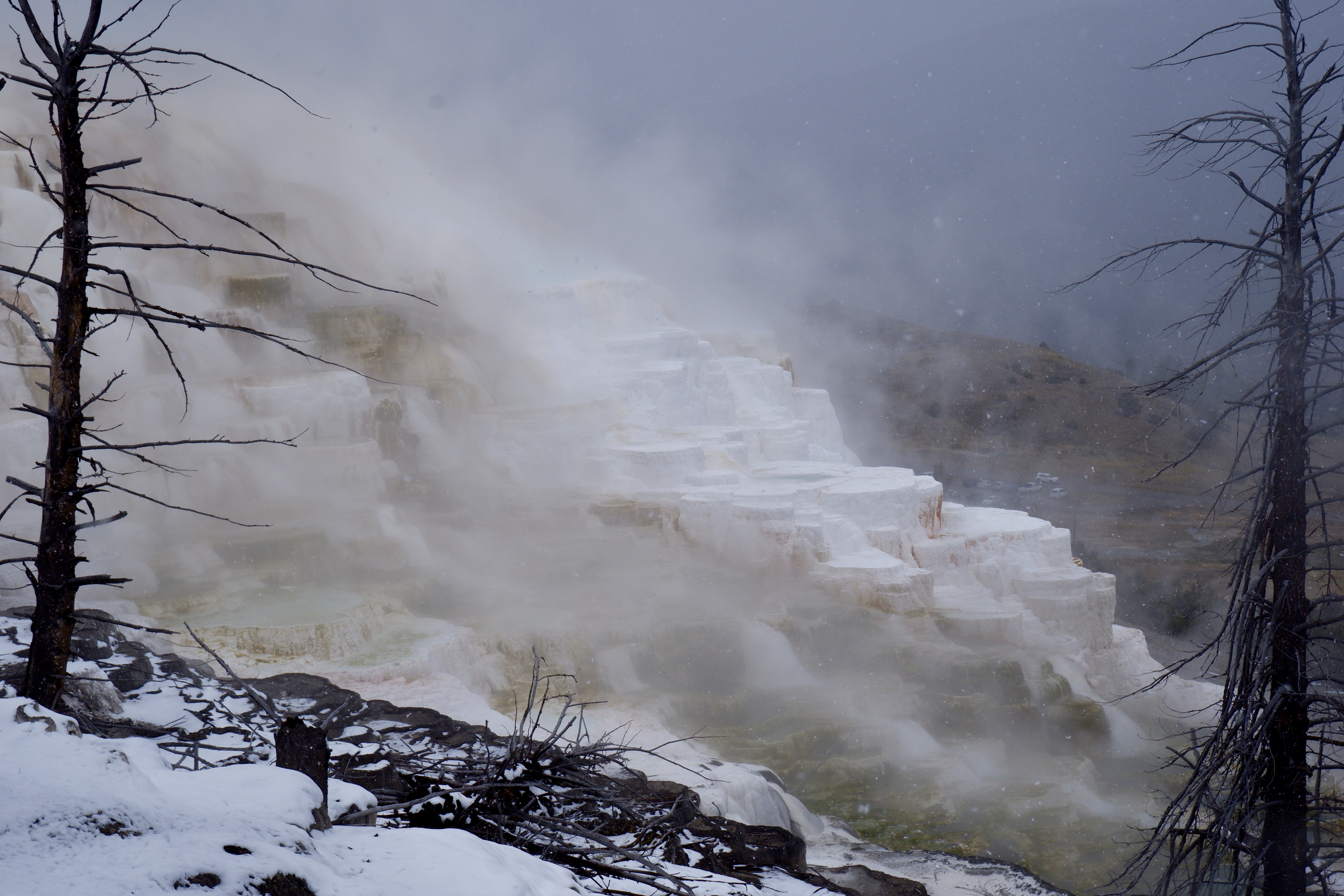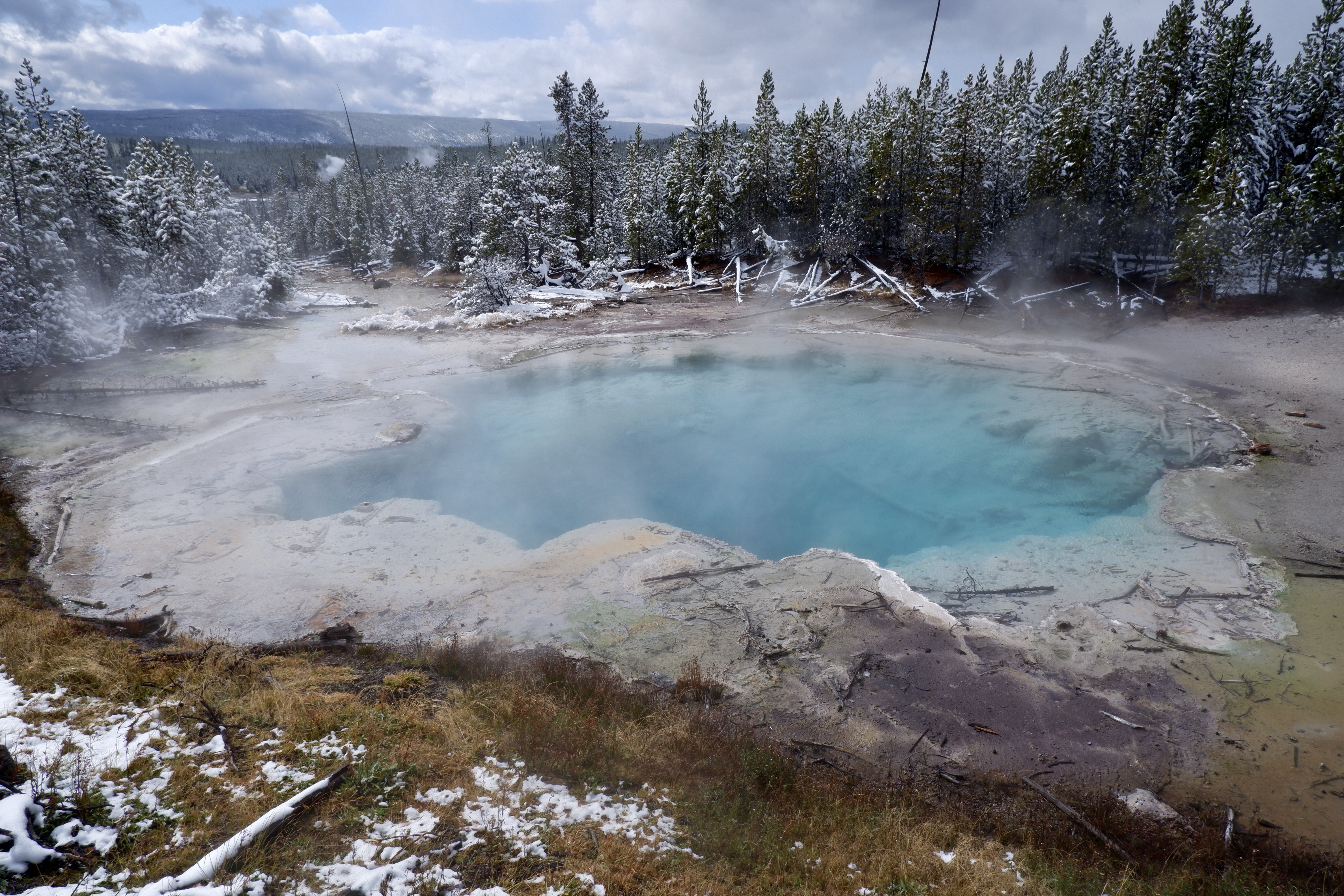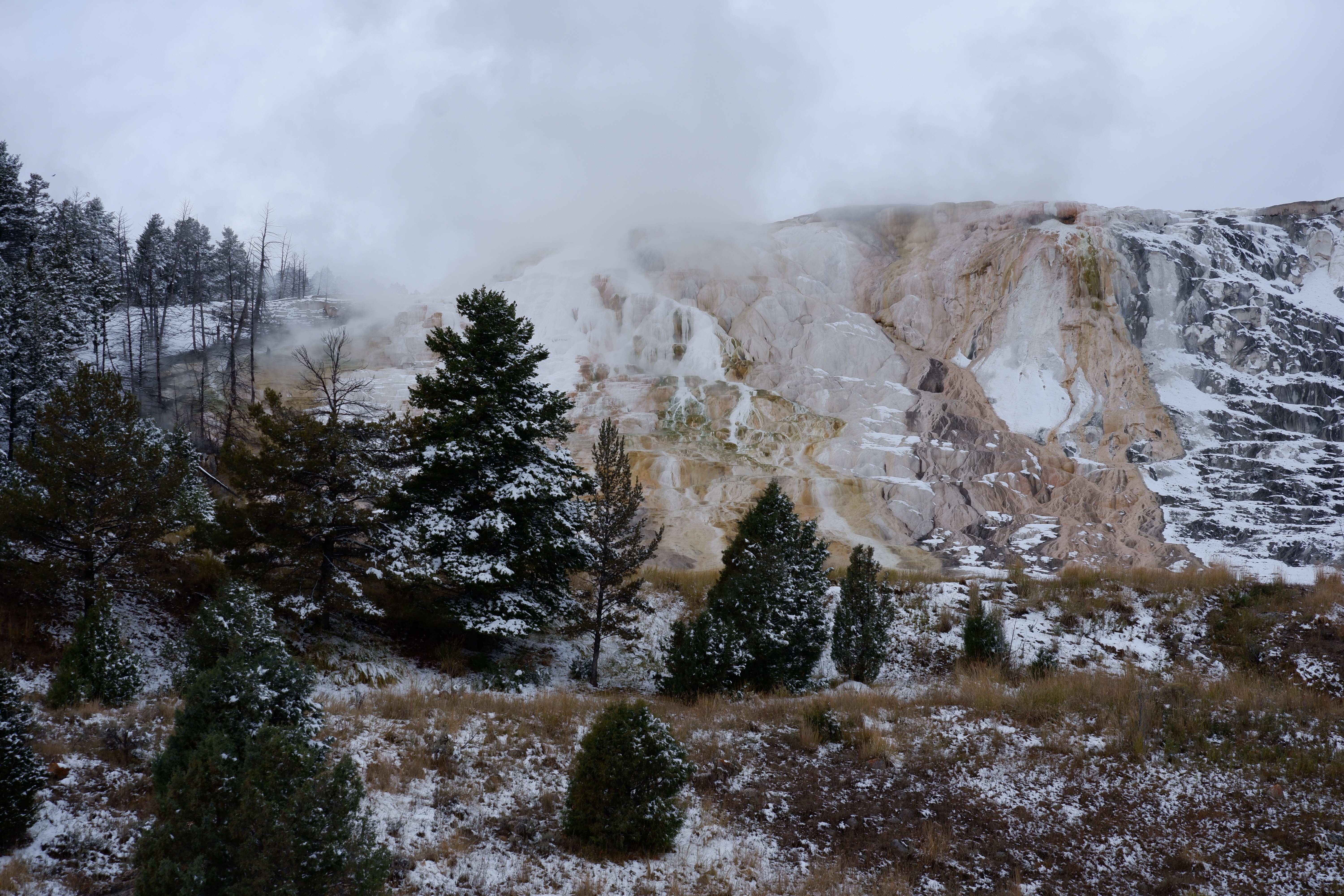The Grand Tetons were indeed covered with a thick dusting of snow and so we headed off for Yellow Stone National Park.