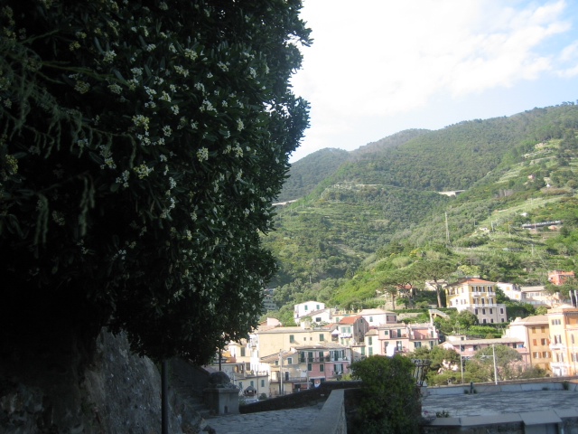Parking proved to be extremely difficult but the good fortune that inevitably clings to us endured. Yet we were unable to ascertain whether after the first thirty minutes our credit card would be automatically charged or if we would be fined if we stayed longer. My risk taking persona melded with Barry’s conservatism and we stayed forty-five minutes. By a happy coincidence, just as we began our descent from the village we found a rare viewing vantage point. With the aid of some vaseline, Barry was just able to squeeze into the last of only about six parking spots, so we managed to spend more time and enjoy a slightly different view. The sight of a group of young picnickers sitting nonchalantly with their legs dangling over the ledge of a precipice sent a surge of vertigo washing over me and I needed to get away.