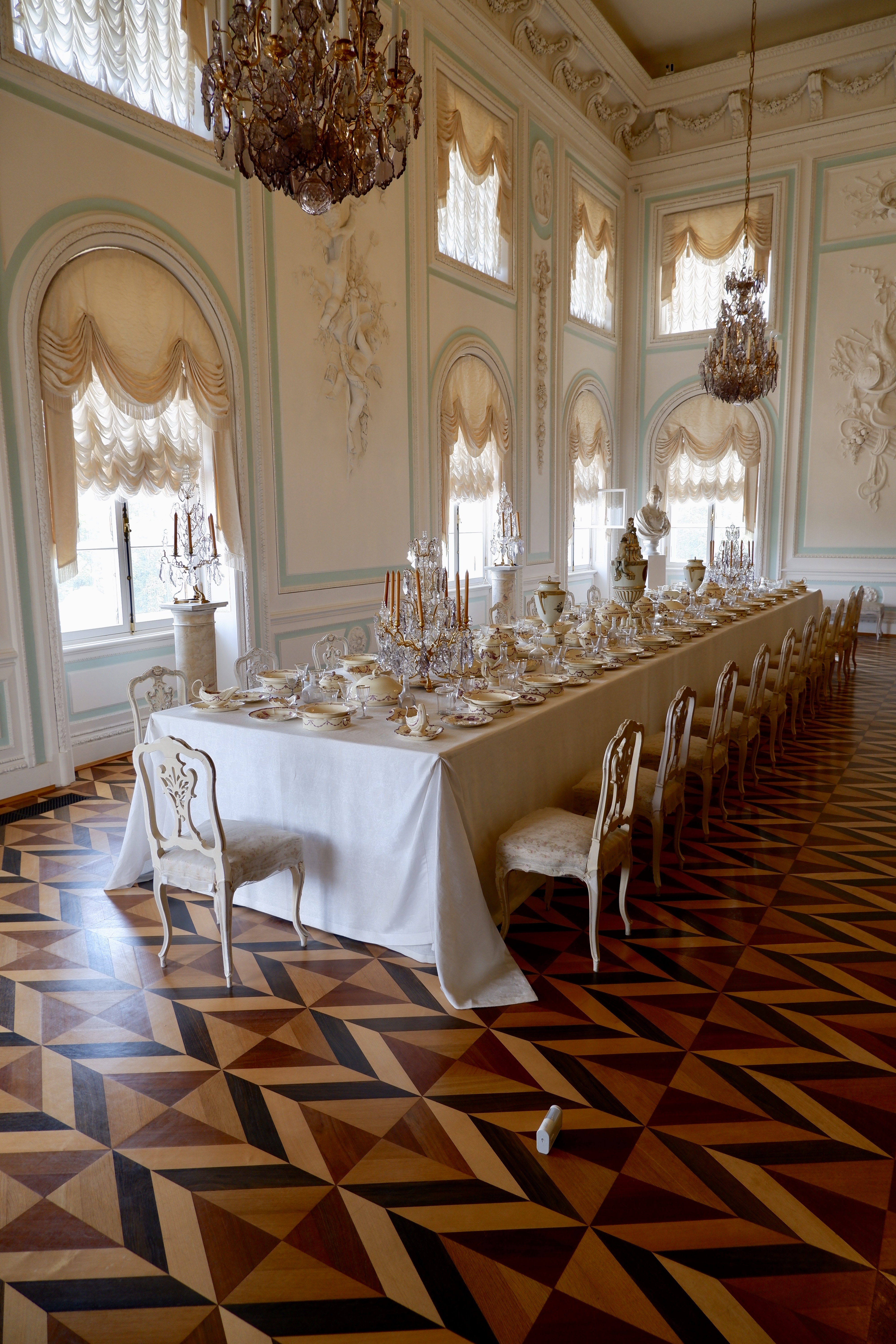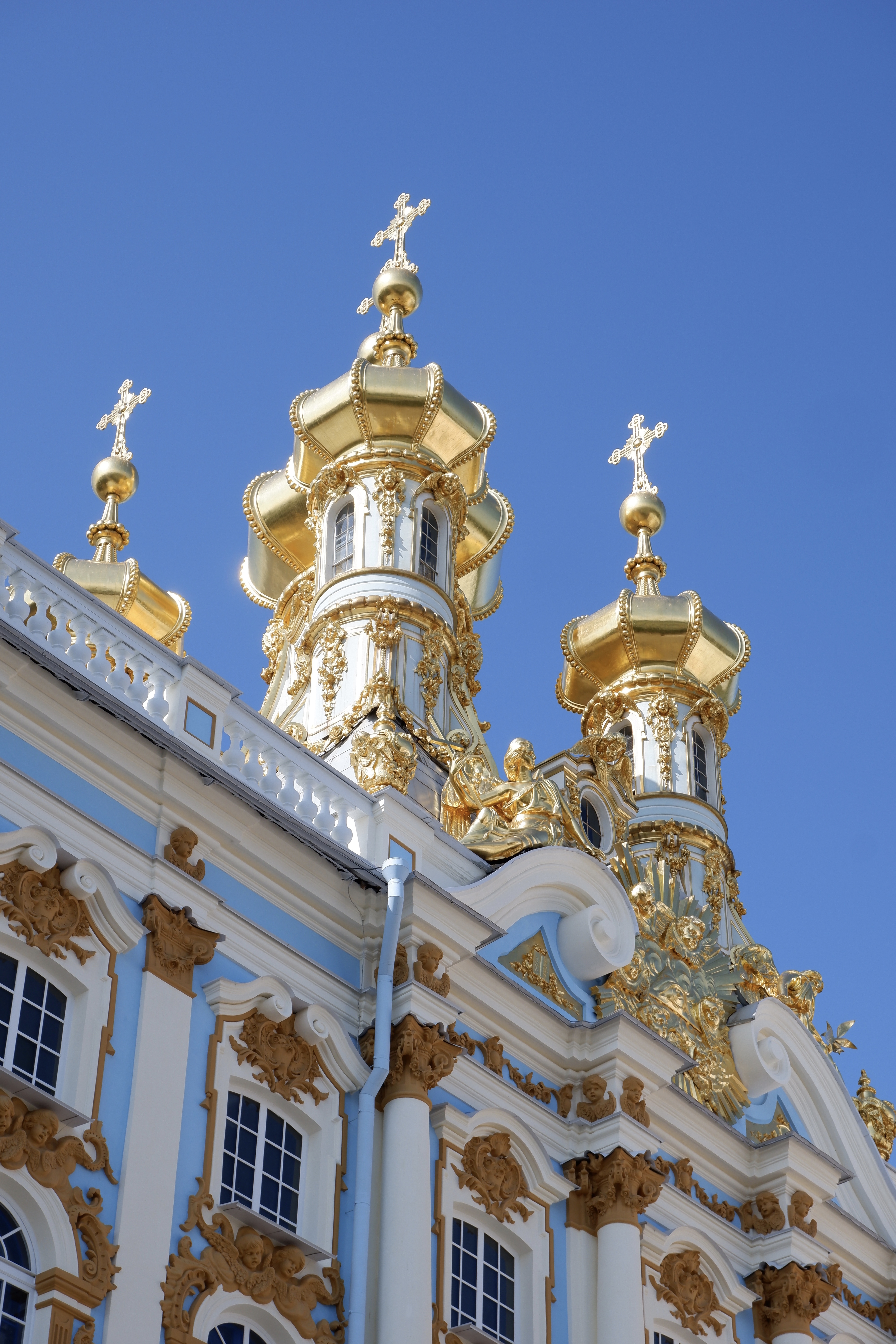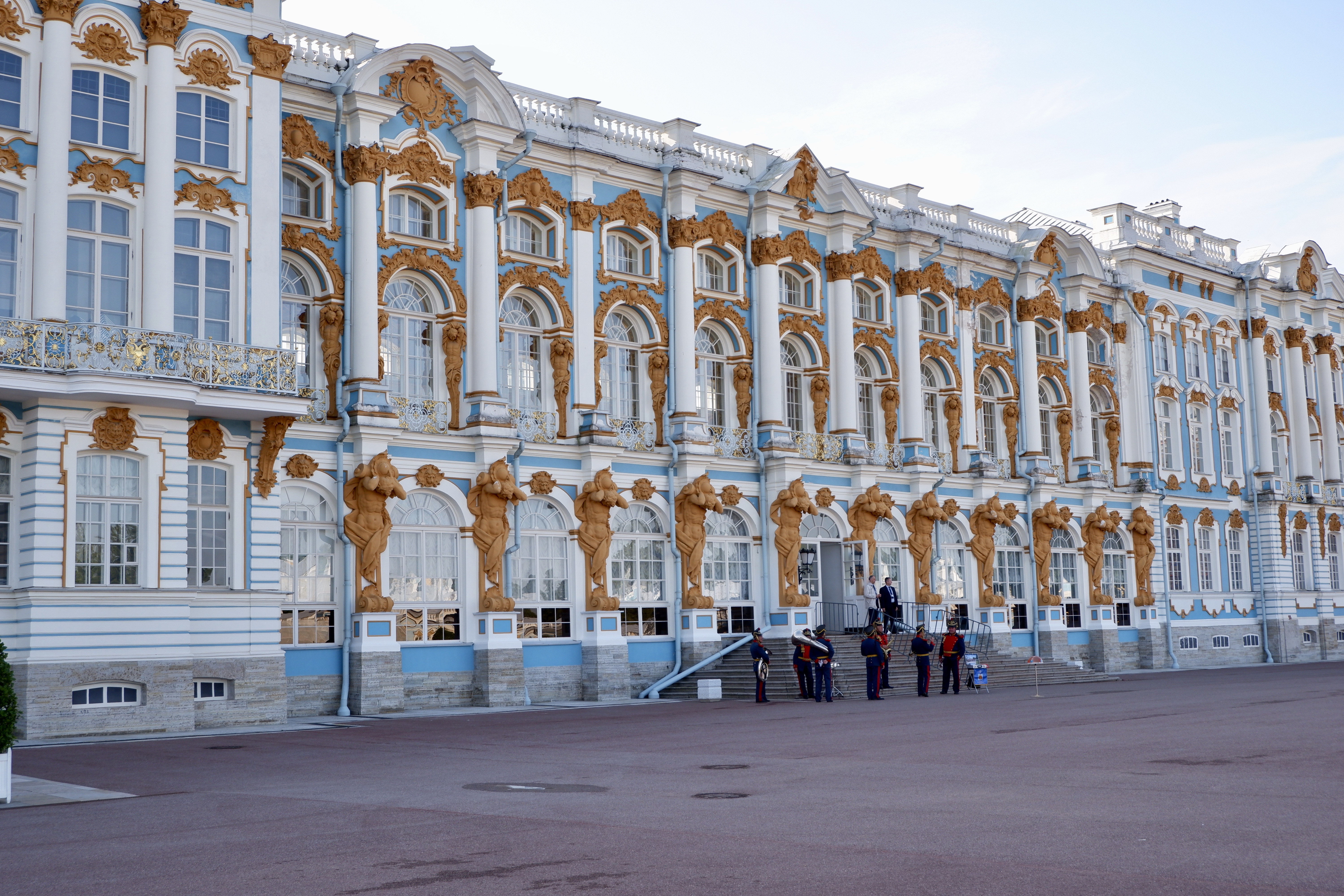 Tatiana had instructed us to be on the dock by 7:45. Another breakfast served in our room at an ungodly hour, ut we were there on time! Once again we had a 90 minute drive out of the city, this time to Catherine’s Palace and the famous ‘Amber Room’, completely encased in Amber, it is the most expensive room in the world. Catherine’s Palace is a perfect example of Russian Baroque, its bright-turquoise exterior distinguished by row after row of white columns and pilasters with gold baroque mouldings running the entire 985 feet of the facade.