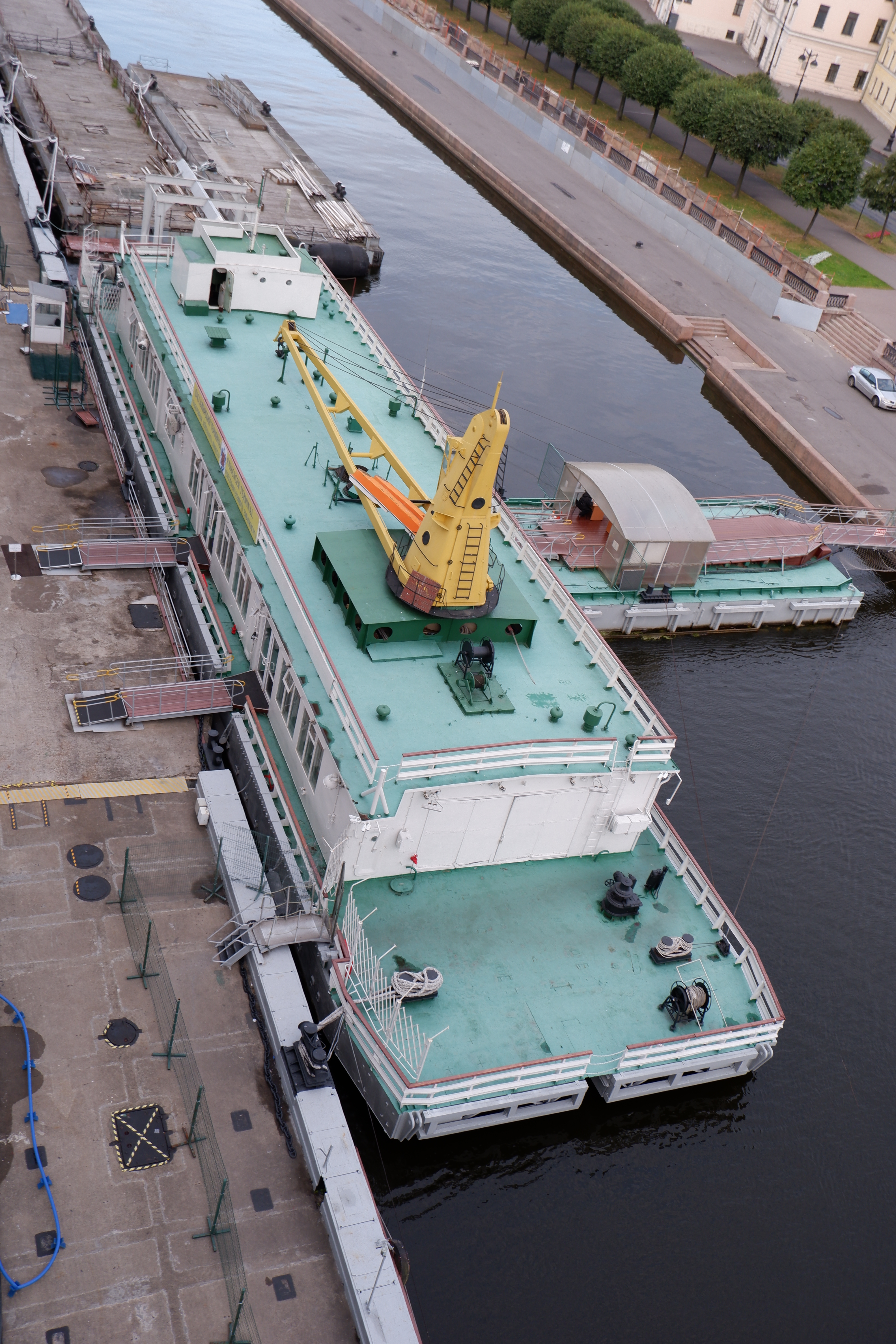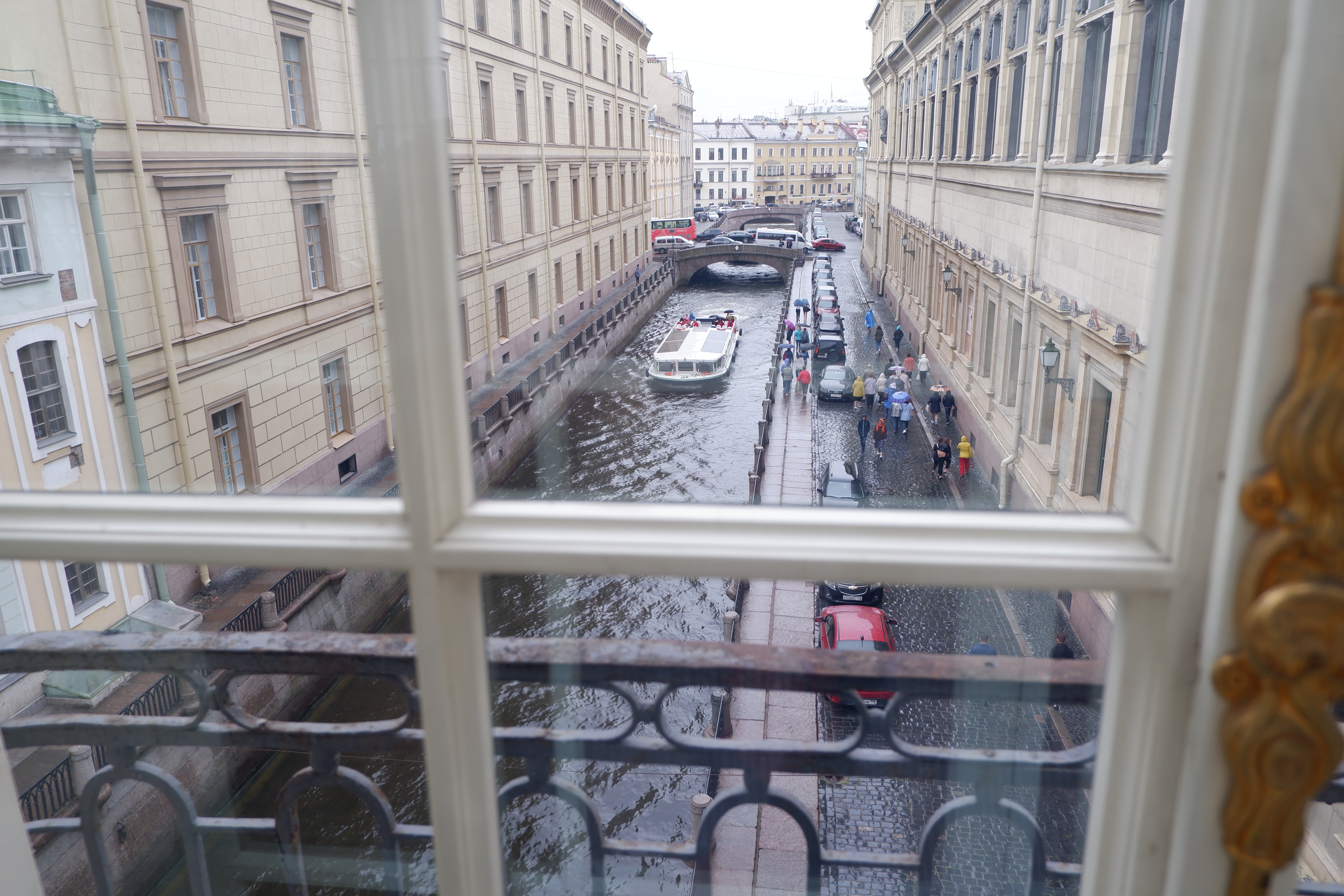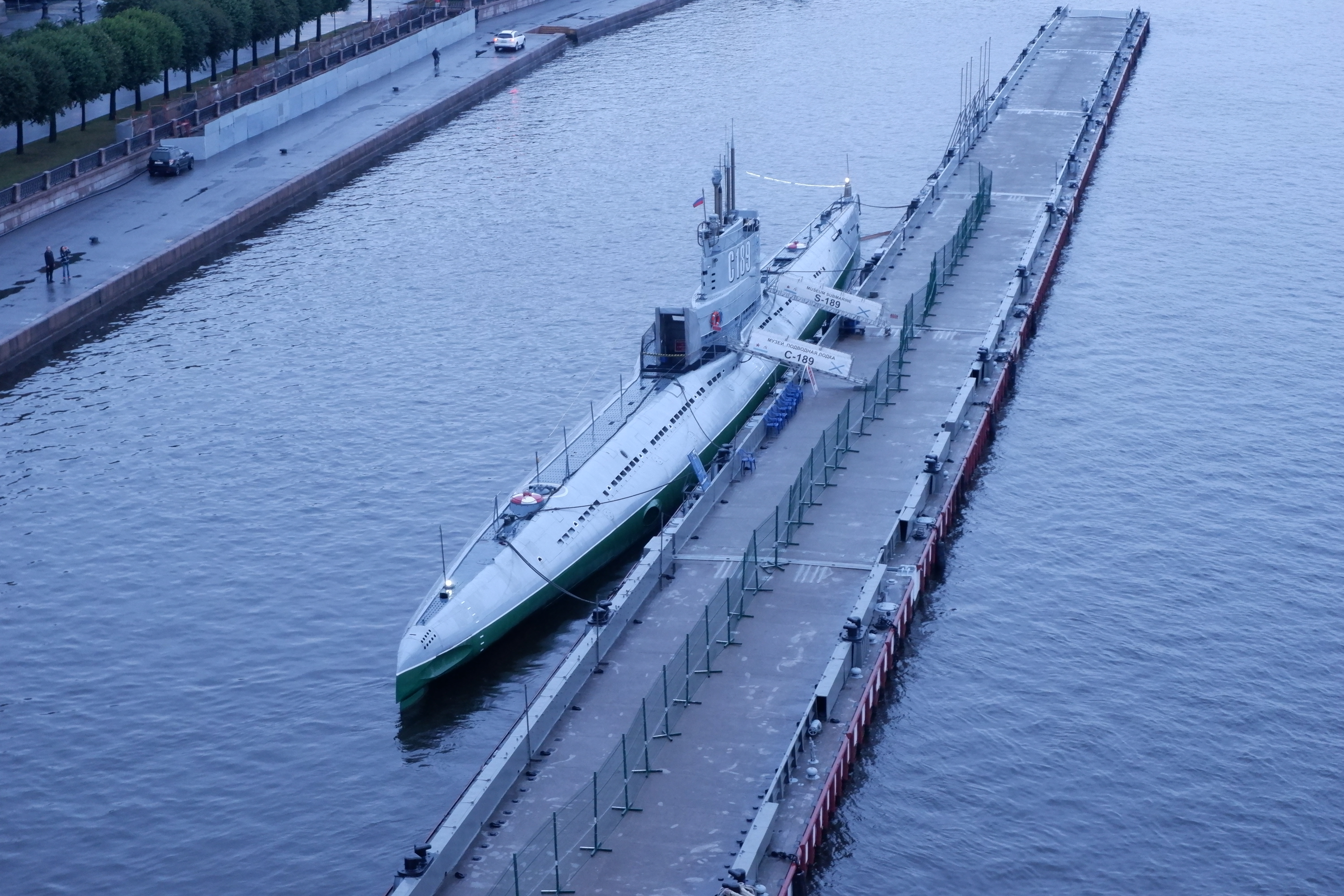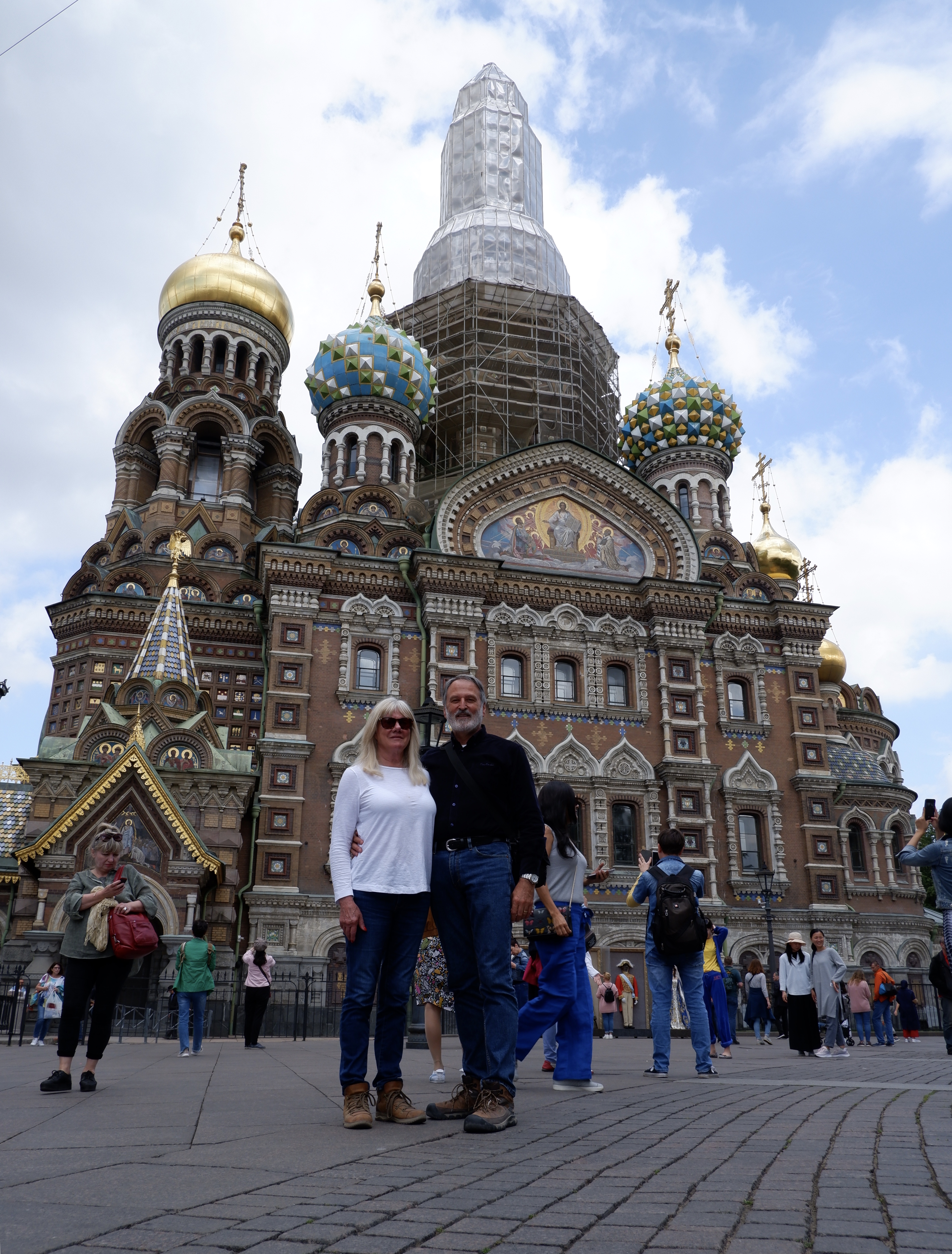 We arrived to look out from our balcony to see the lovely vista of the ‘Church of the Spilled Blood’. Not quite so lovely was the submarine alongside us and the ugly floating immigration barge checkpoint.