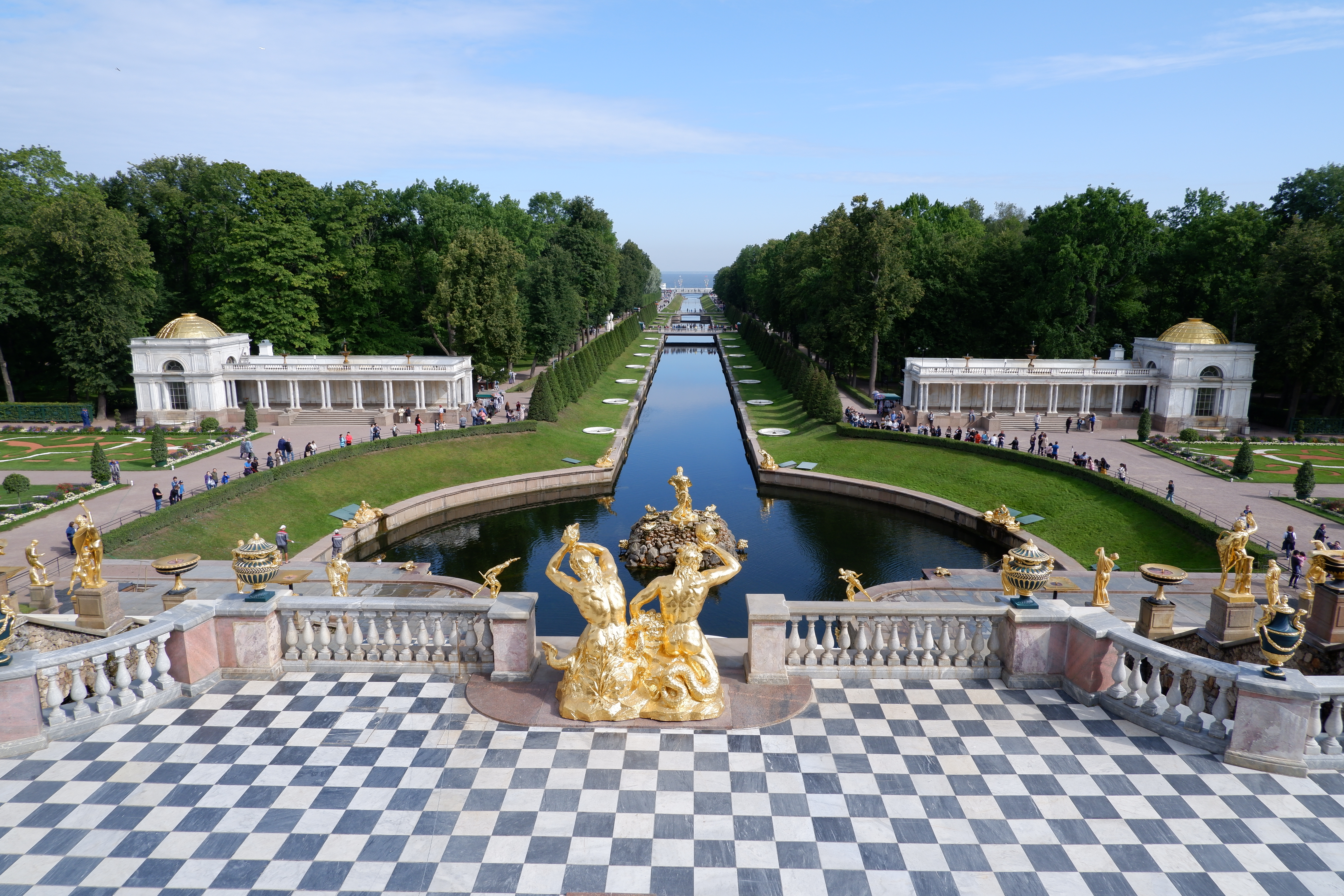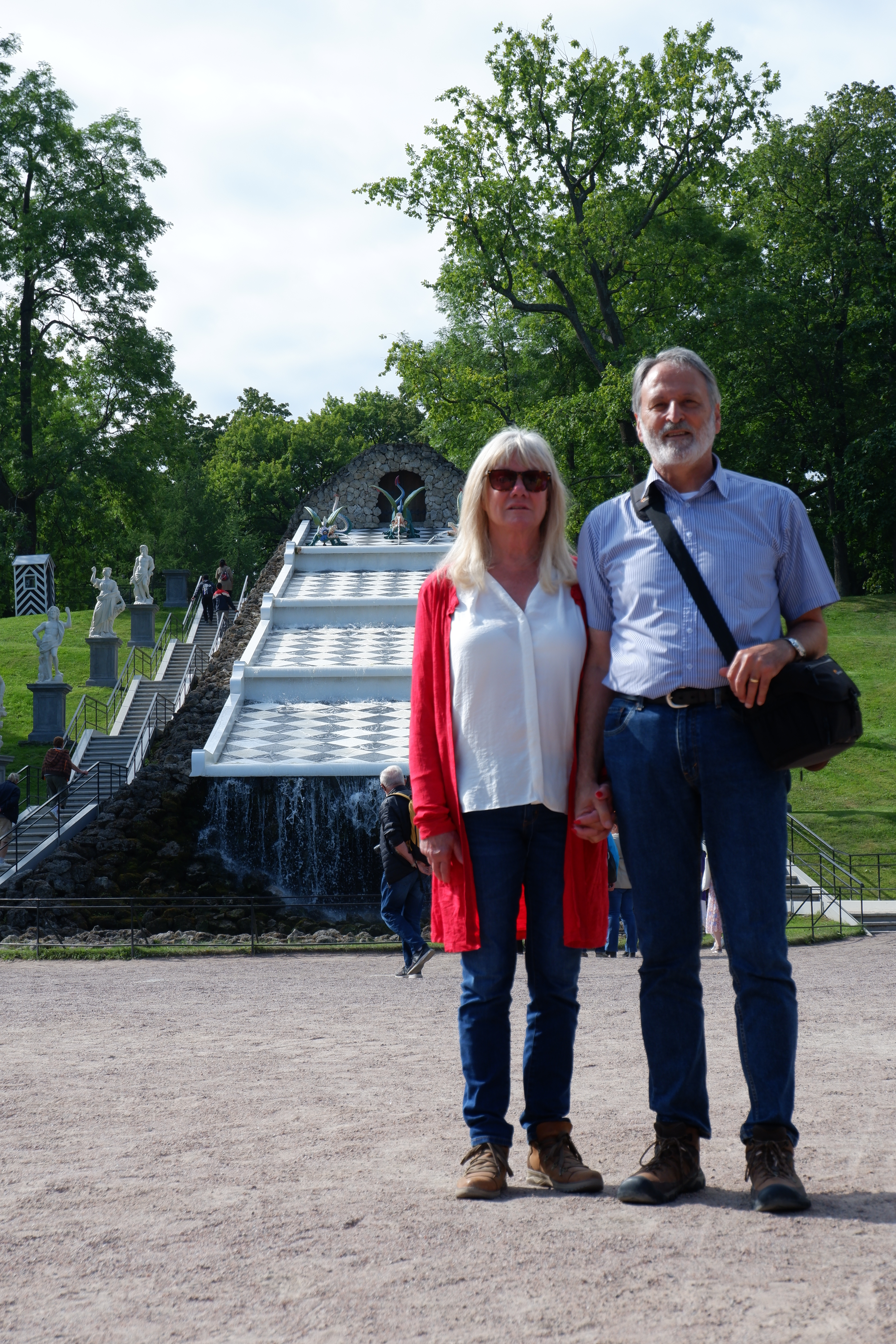 We had organised a private guide and driver to meet us where the ship docked. That turned out to be a fabulous idea. We hate the idea of following around someone carrying a red flag along with forty other people, but discovered that the greatest benefit was having ‘Tatiana’ squeeze us quickly past the waiting throngs and know the back corridors to special museum rooms not already crowded with milling people. First we drove an hour and a half out of town to Peterhof, the location of the Summer Palace of the Tsars. The gardens were equally spectacular.