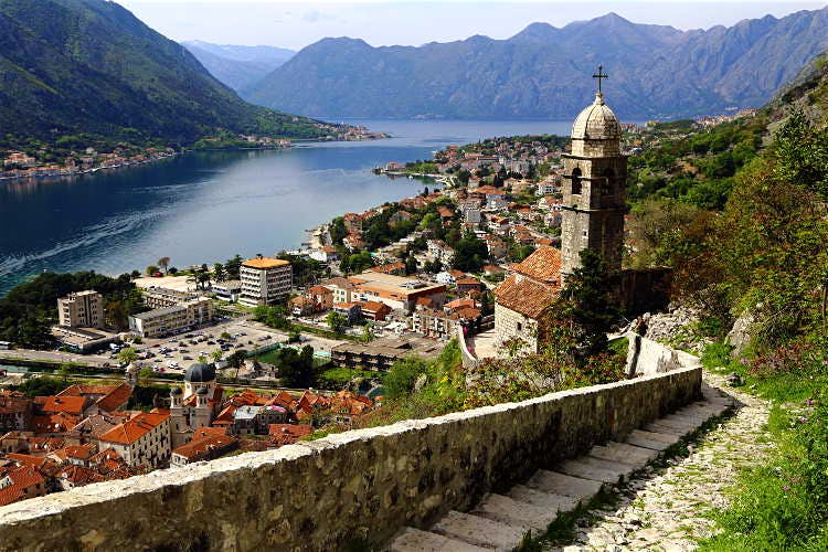 Kotor is a town on Montenegro’s coast that is fortified by 4.5 km of ancient walls built between the 9th and 18th centuries, directly above the city. The medieval old town is characterised by winding streets and squares and has several Romanesque churches including Kotor Cathedral.