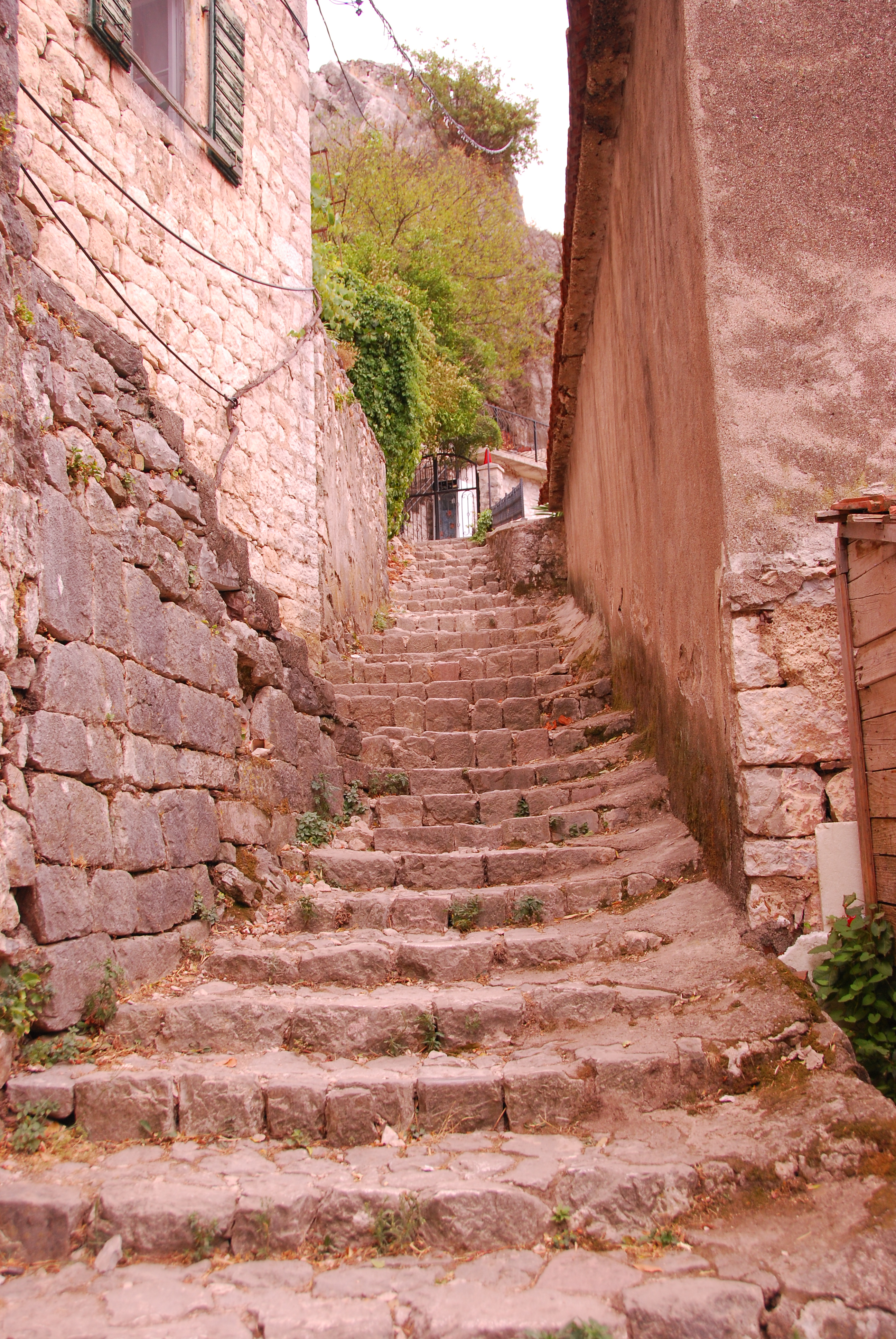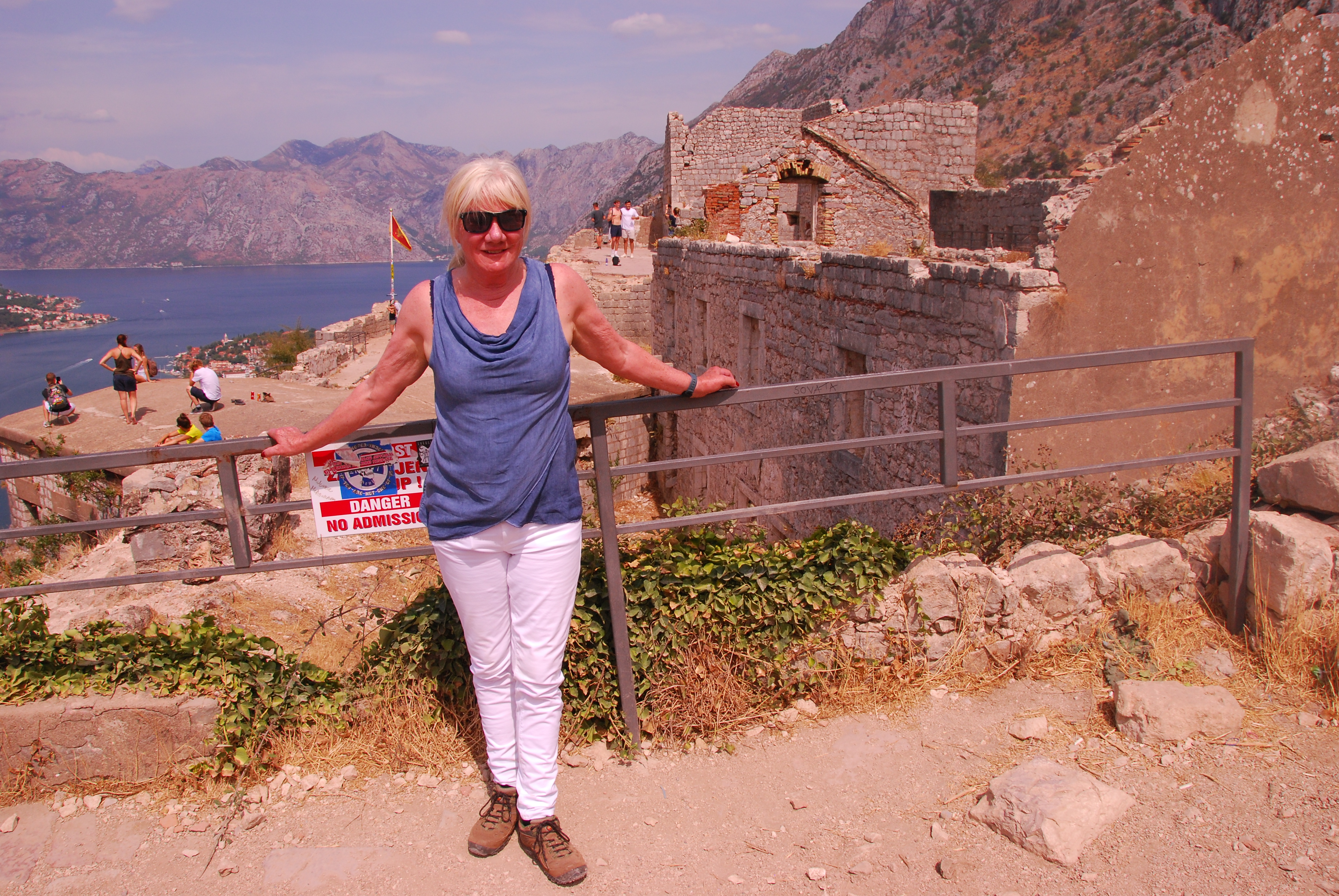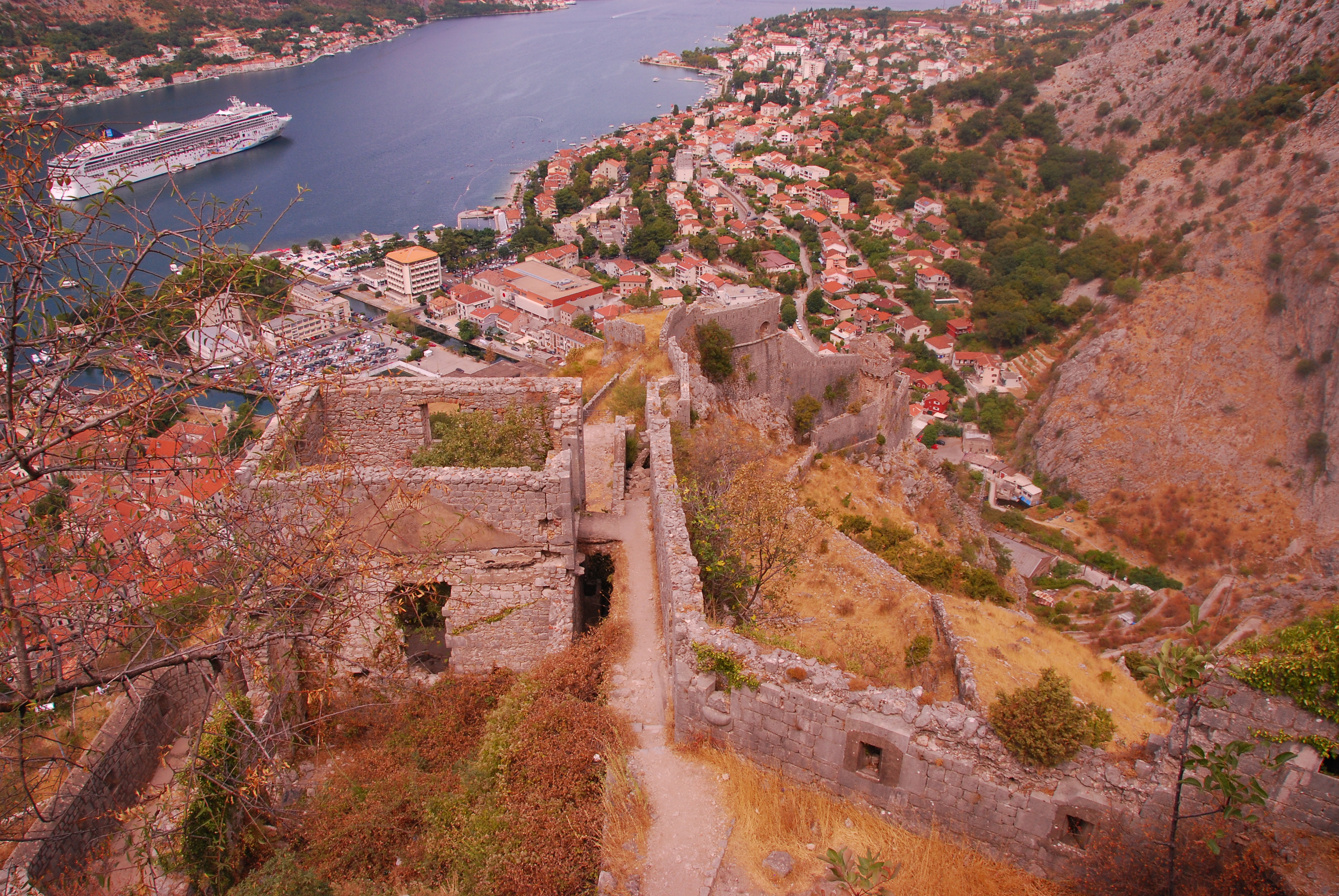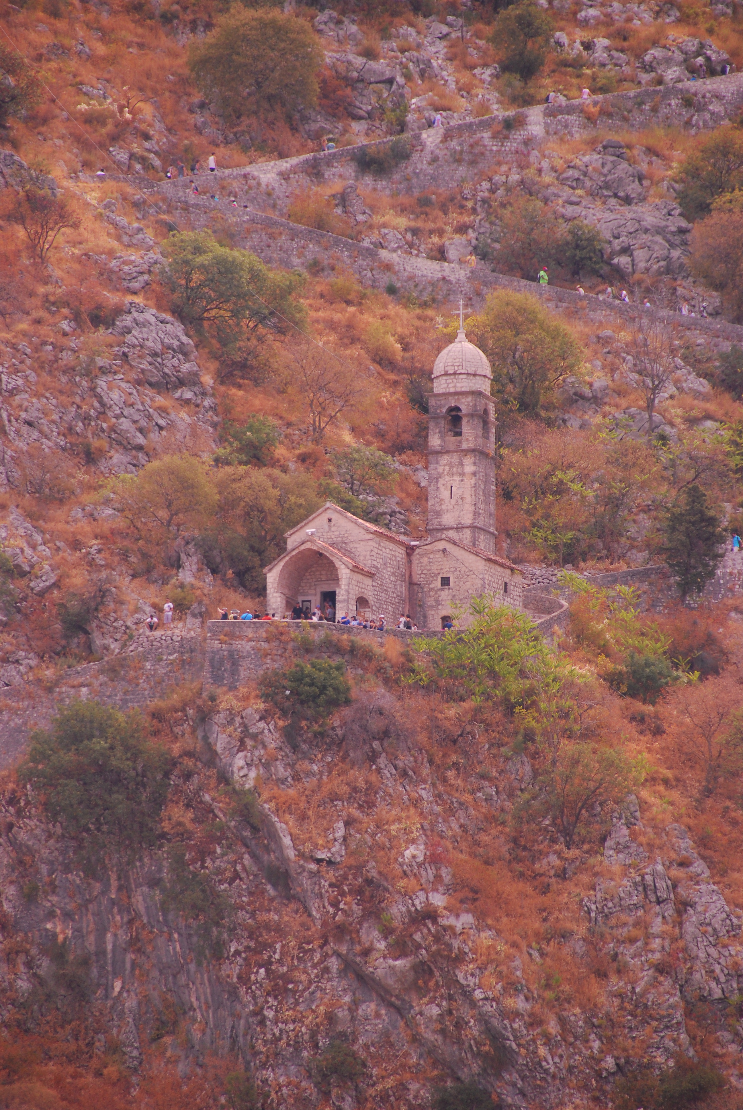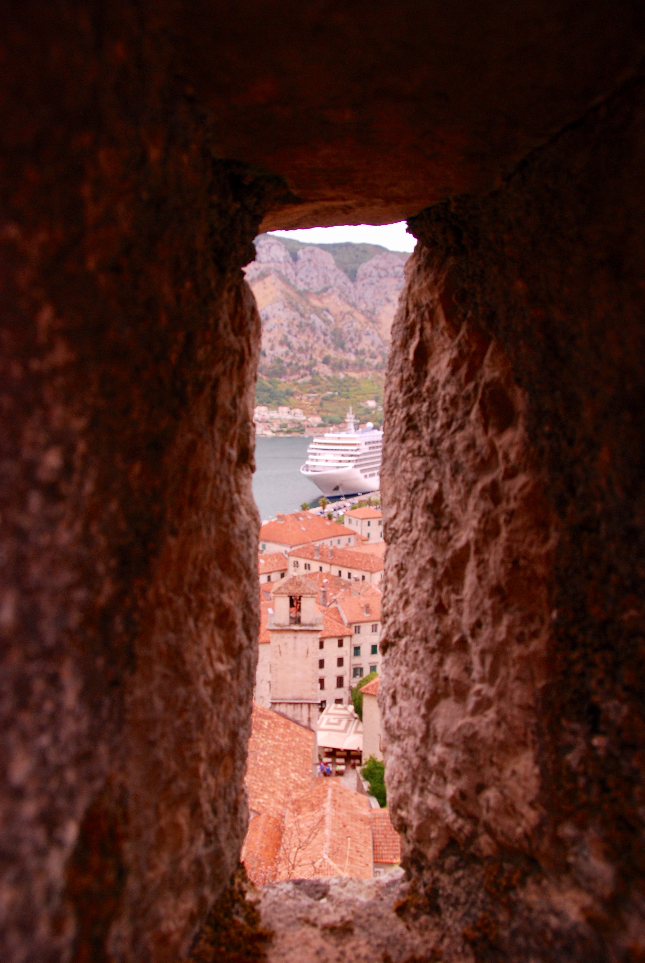 Backed by imposing mountains, tiny Kotor lies hidden from the open sea, it is Europe’s most southernly fjord. We were immediately attracted to the hilltop fortress for the wonderful views which were likely to be had, and so followed a steady stream of primarily, young, trekkers with the same idea. Interestingly, the higher we climbed, the less crowded the steps became!