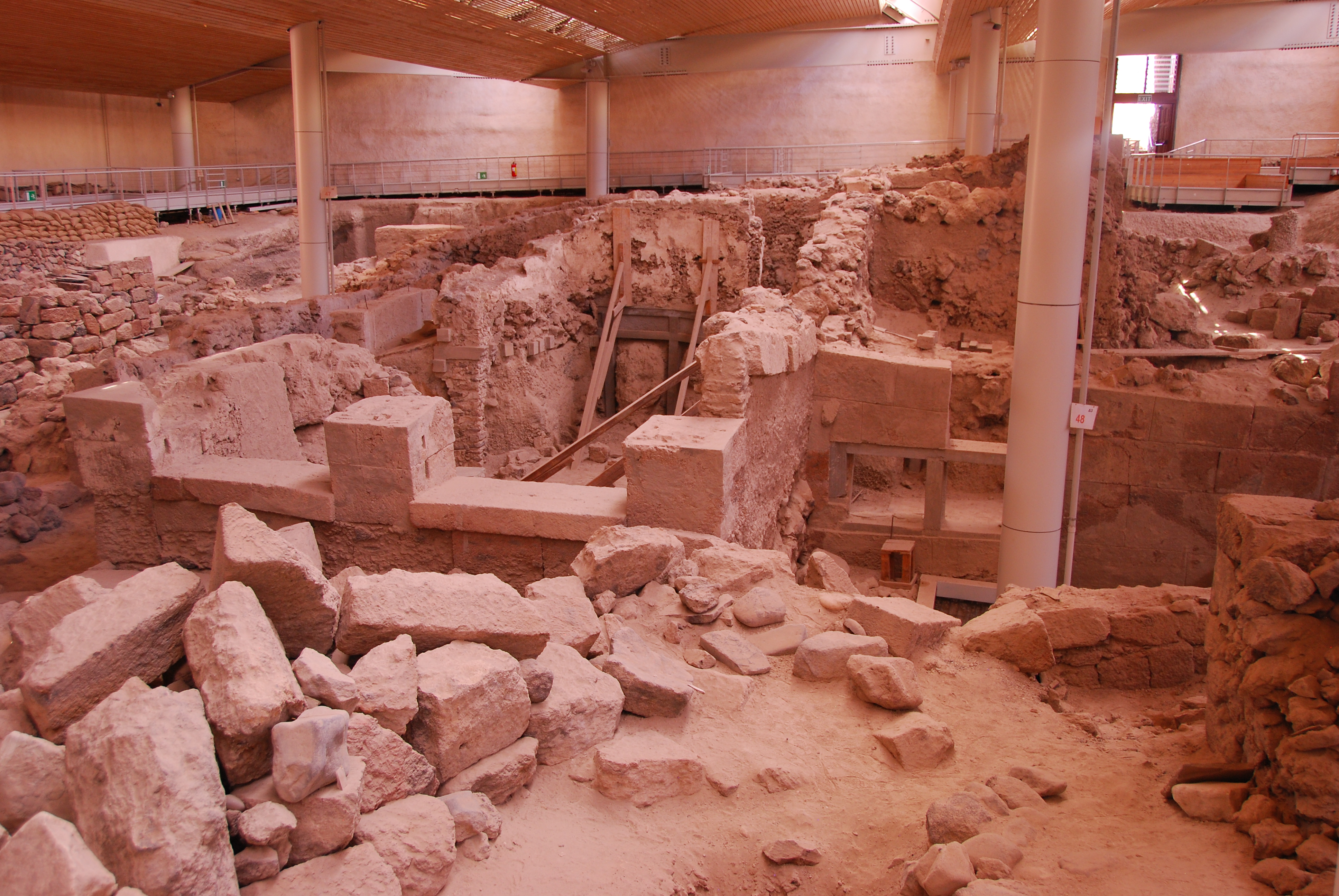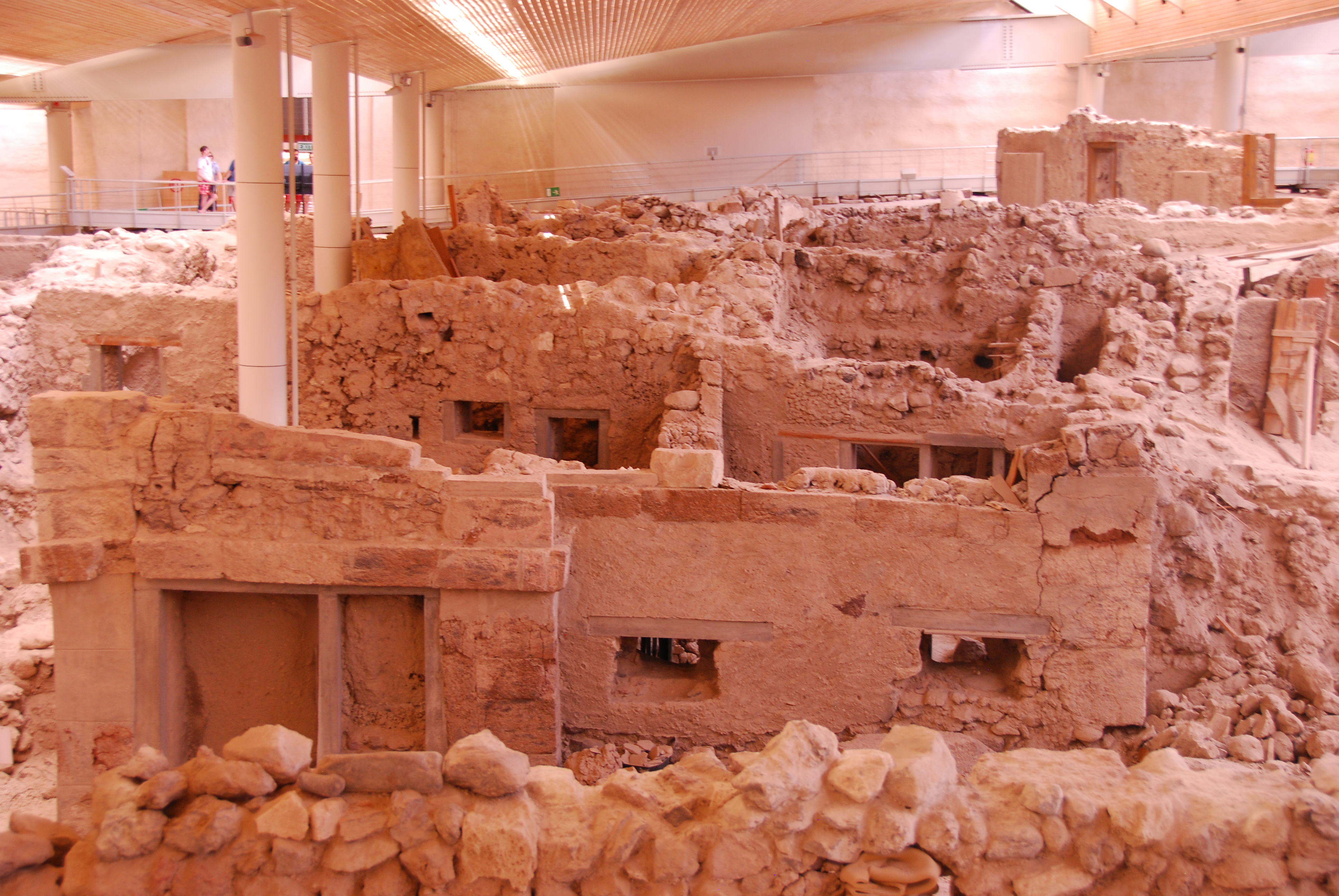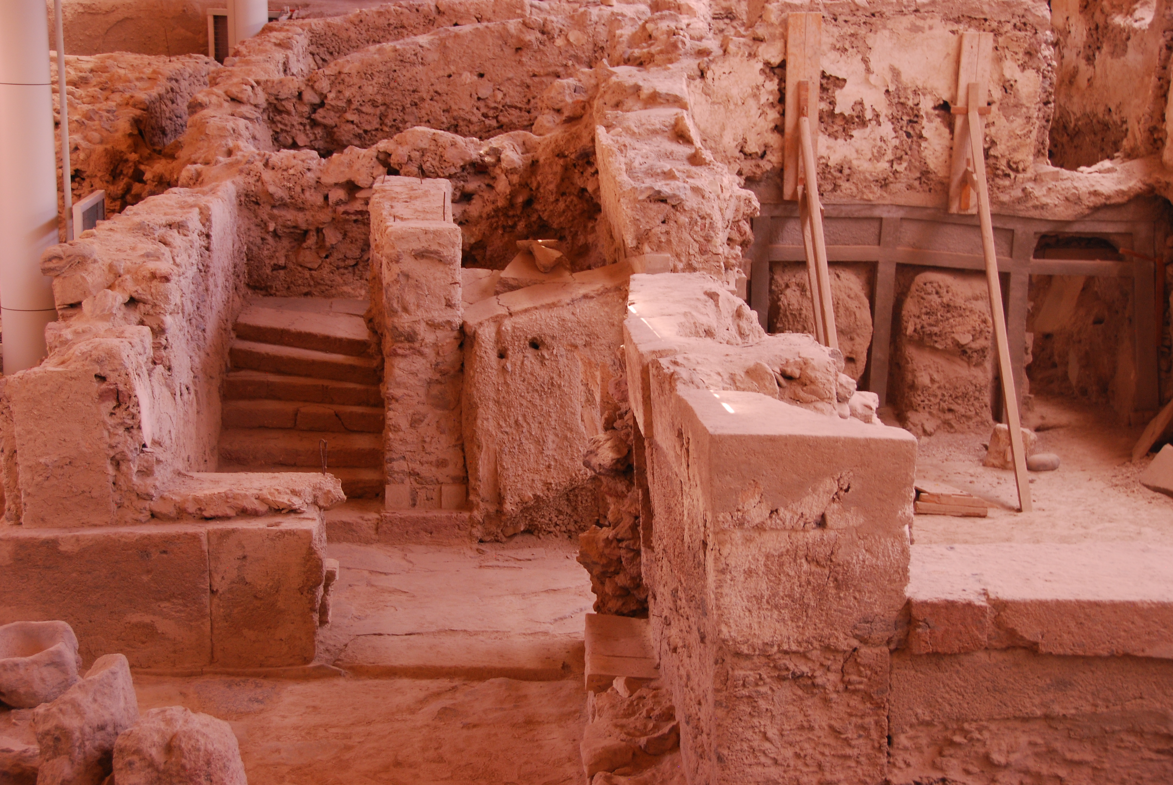 Thousands of years ago a colossal volcanic eruption caused the center of the island to sink, leaving a crater with towering cliffs along the east side which is now Santorini’s trade-mark landscape. We took a local bus to the fascinating site of Akrotiri. Reminiscent of Pompeii, Akrotiri displays a Minoan city destroyed by the volcanic eruption of 1613 BC.