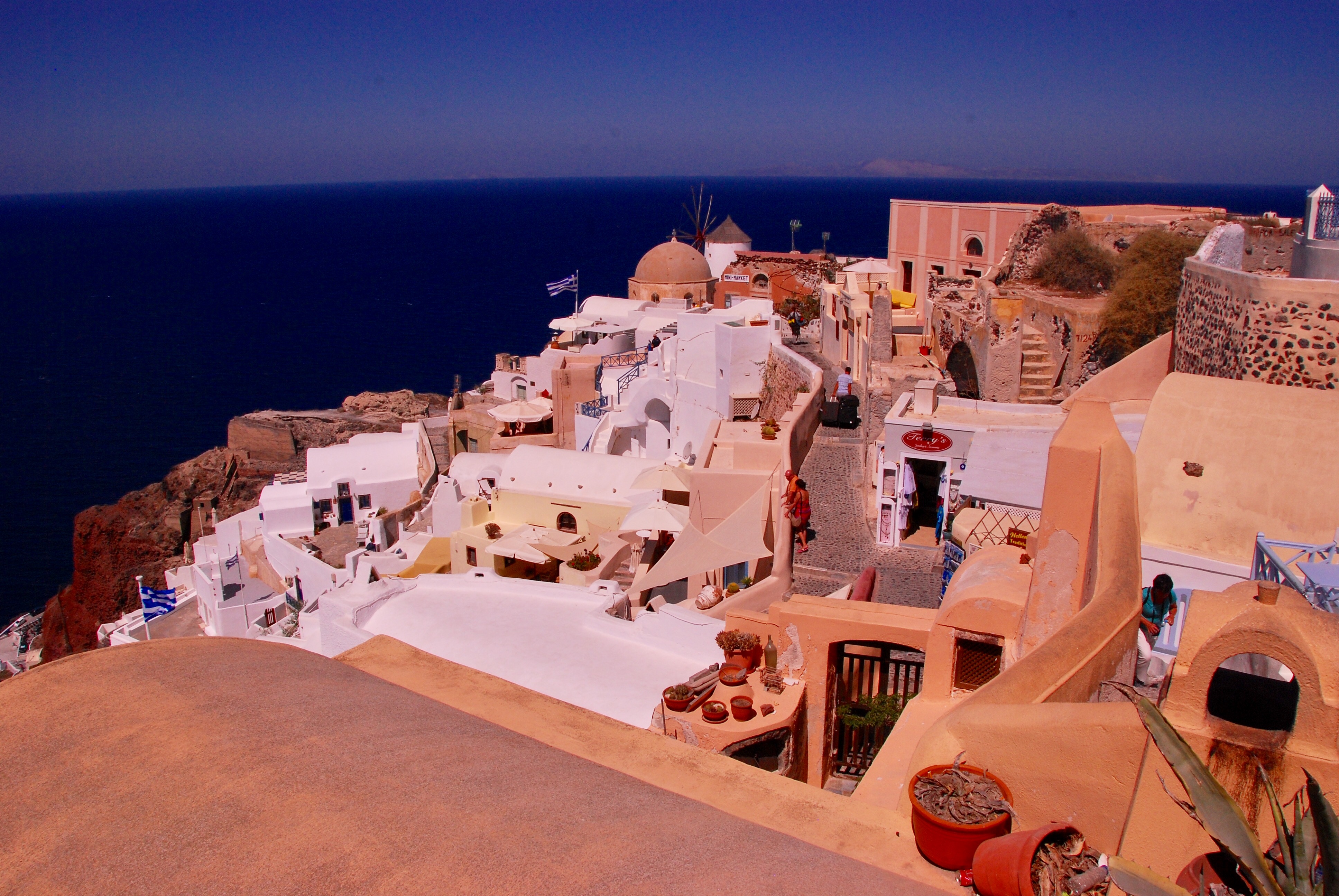 KATAKOLAN is a sleepy little town and appears to only exist because of the many cruise ships that dock here. The reason tourists are drawn to this port is its proximity to Olympia. Barry had been sorely disappointed on his previous visit there over thirty years ago, so we decided to have a ‘lay’ day. We wondered down the wharf but quickly tired of the tacky tourist shops filled with products largely made in China. We rather enjoyed the slow pace of the day and the rare opportunity to eat lunch on board. We were pleased to be well rested for our arrival in Santorini the next day.