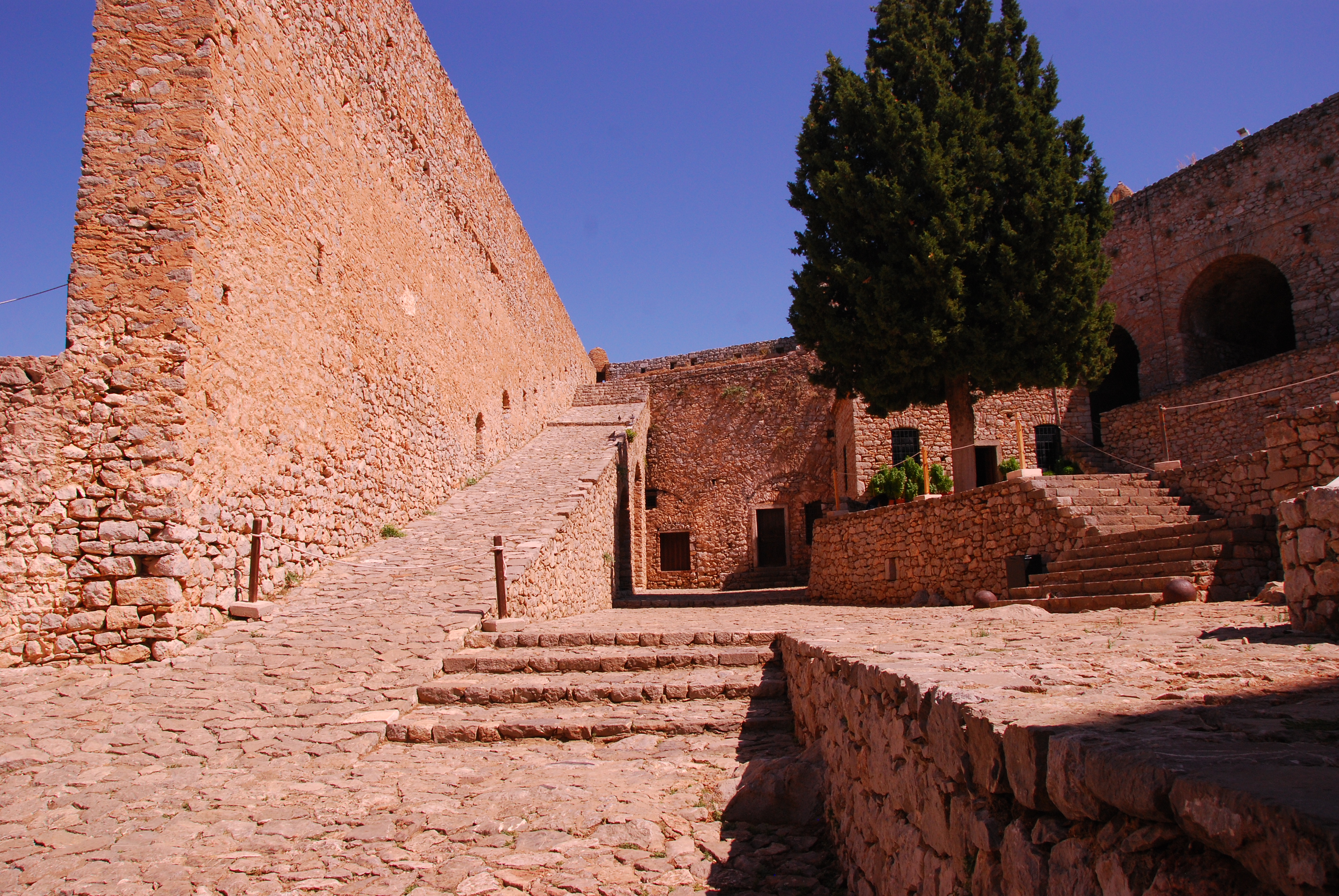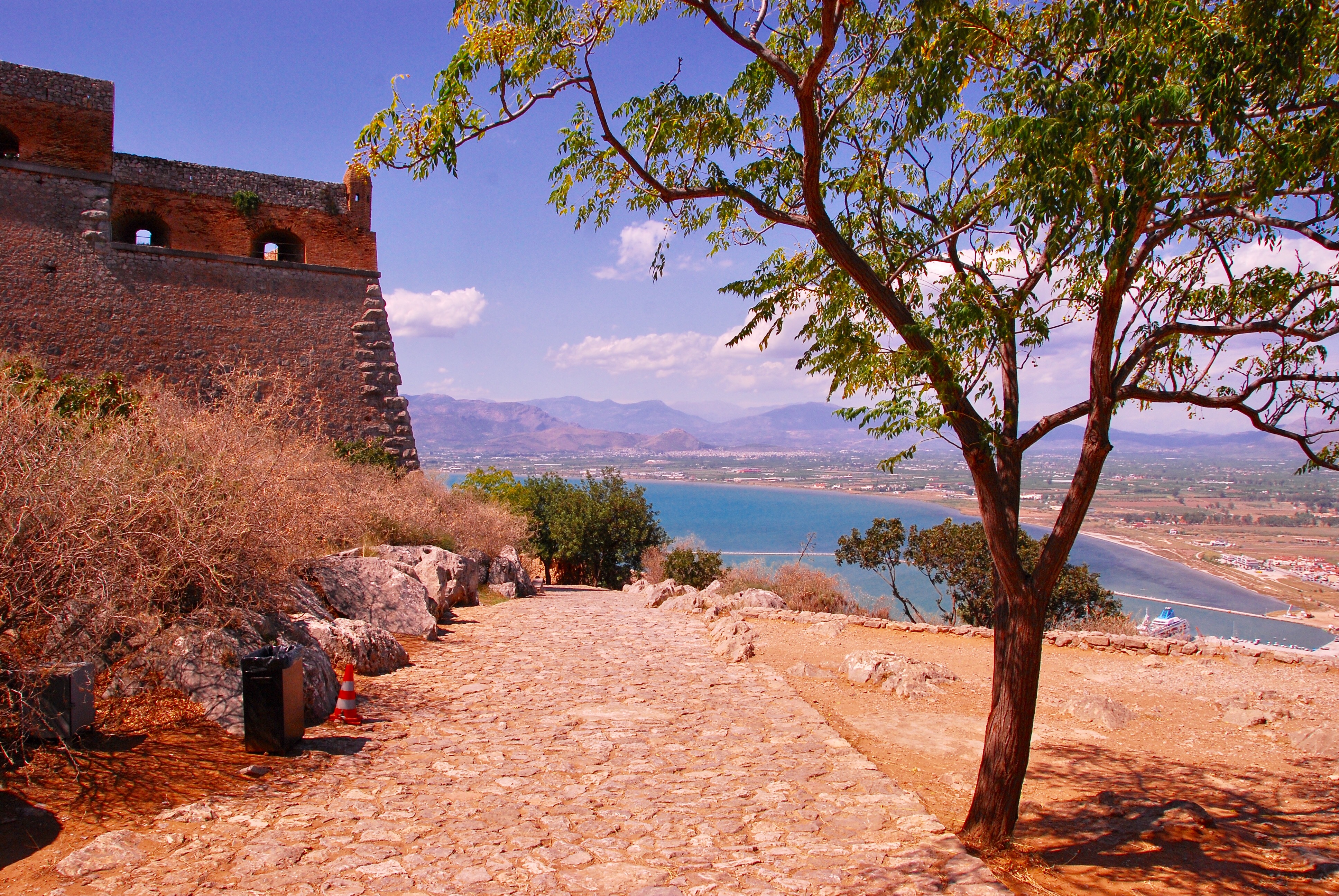 We had a look at the Corinth Canal, then onto Corinth where St Paul preached to the Corinthians. We passed through farmlands and spotted many fields of apricots and olive trees as well as vineyards. At Mycenae we saw the Tomb of Agamemnon then drove to Nafplio for lunch by the seaside before visiting the Palamidi castle.