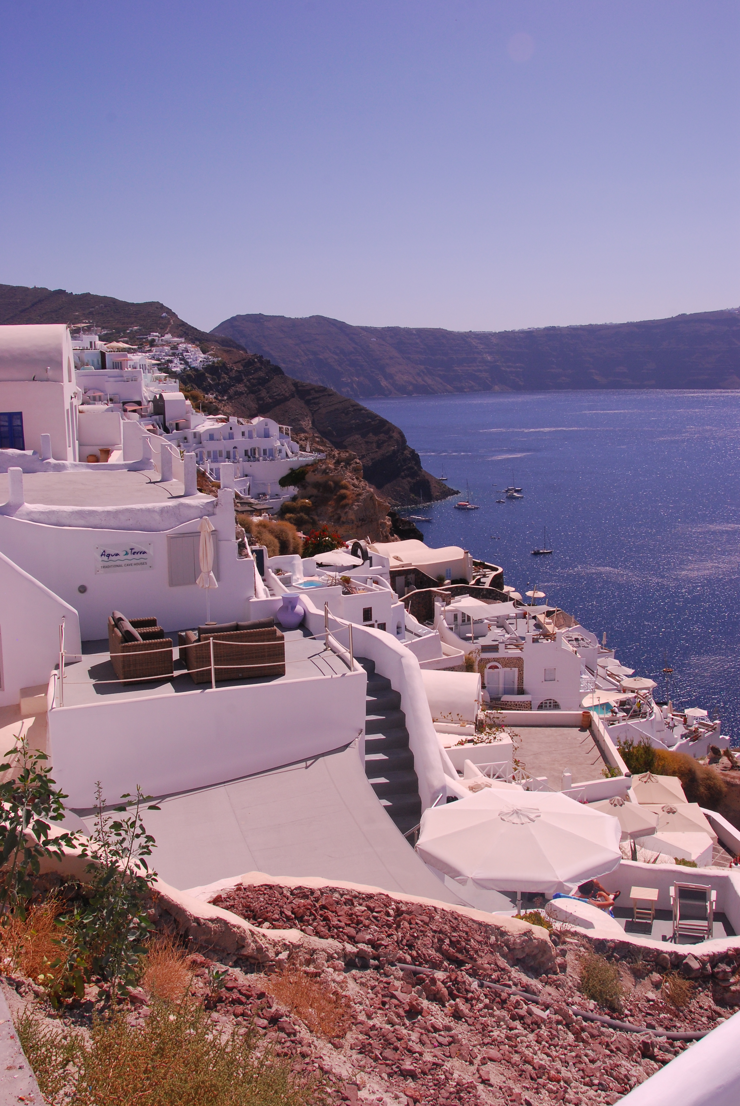 We spent a relaxing day in Santorini, wandering around the streets leading down to the sea, strolling in and out of shops that for once had high quality merchandise and finally taking a punt, walking up a flight of stairs to an outdoor restaurant with panoramic views over the lovely blue sea and having an absolutely delicious lunch. I wish I had taken notice of the name of it so that I could recommend it to fellow travellers.