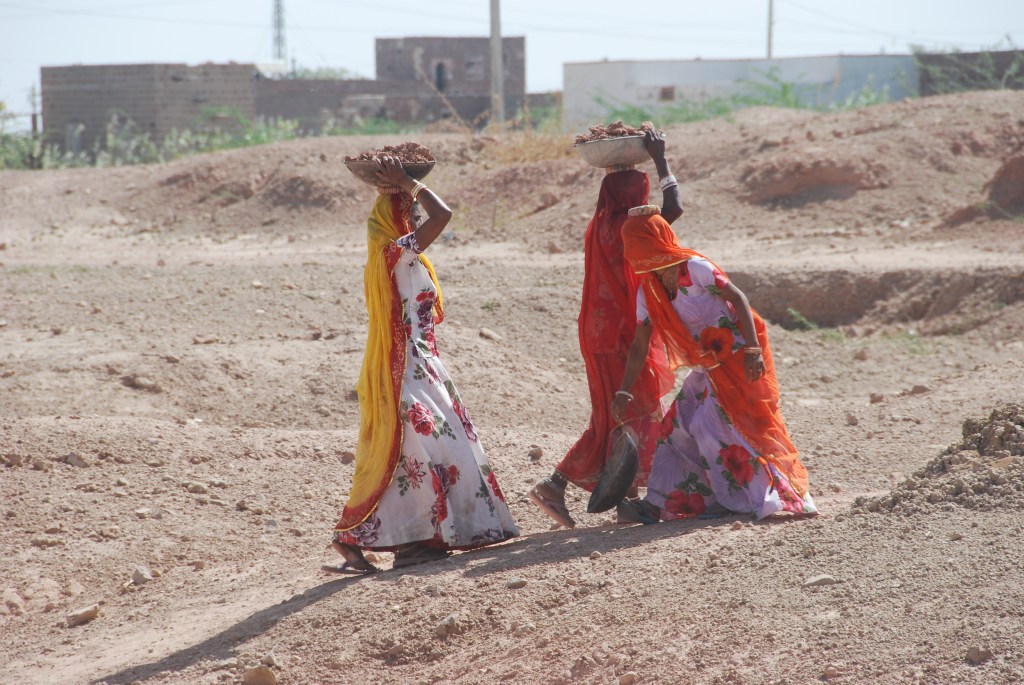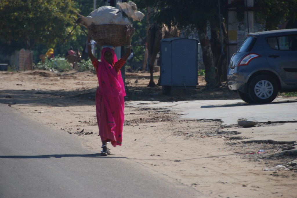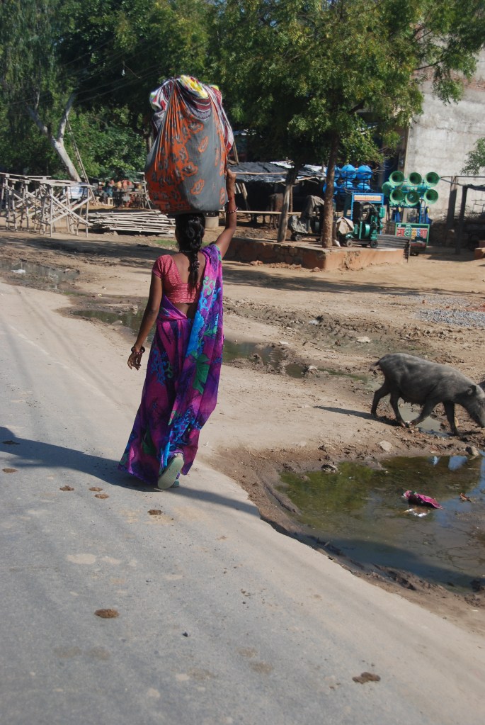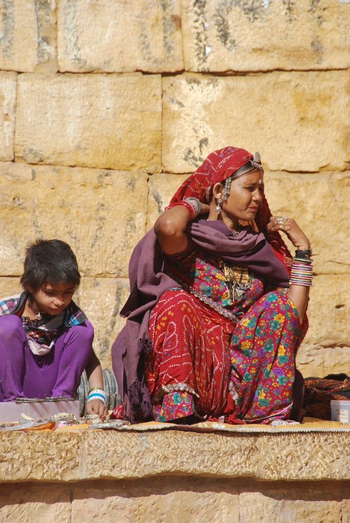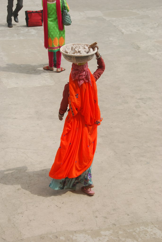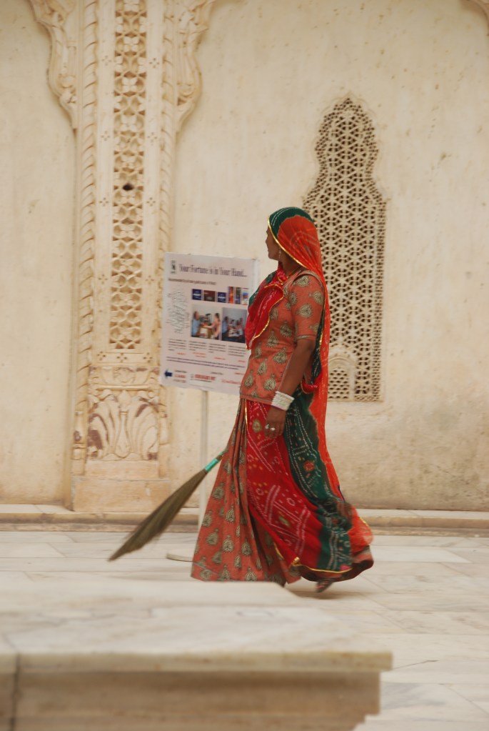I so admired the beautiful Rajasthani women in their colourful clothing. While India has its fair representation of female doctors, lawyers, engineers, architects, teachers and other university educated professionals, the women that I encountered on this trip were usually simple working women. They were the cleaners in the temples, the workers in the fields, the vendors selling their wares, the ladies carrying huge burdens on their heads and often labourers clearing rubble or working water wheels. Their clothing was always vibrant and, in the most difficult of circumstances, usually immaculately clean. I loved their clothing so much, in fact, that when I saw Photographs of traditional Rajasthani wedding attire with full red skirts heavy with intricately hand sewn threads of gold, I was determined to find one for my own wedding later in the year. Our driver, Mahendra, appeared to be horrified at the very idea that I would want a previously worn antique. He kept trying to steer me towards the more modern and more garish varieties, often in bright green or yellow with machine sewn flimsy gold thread.