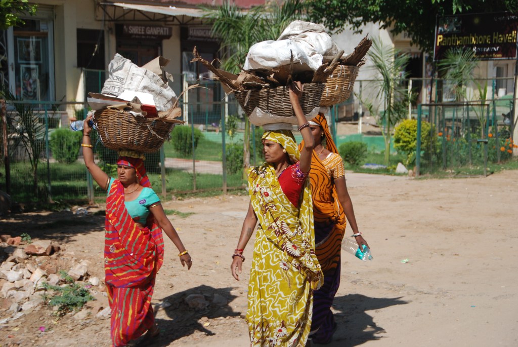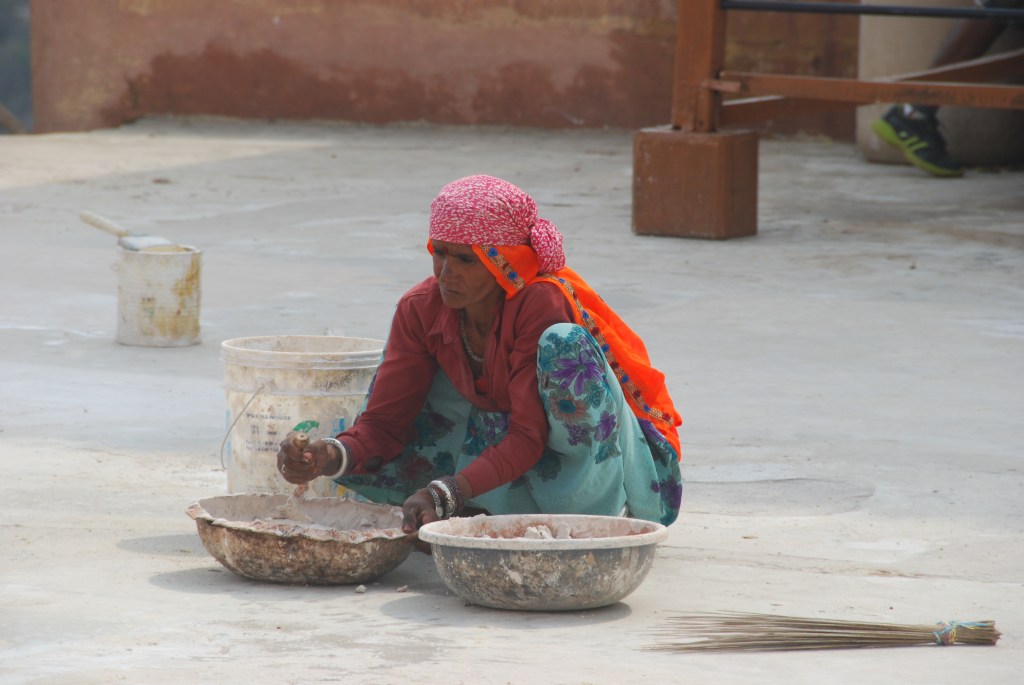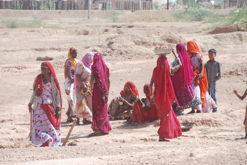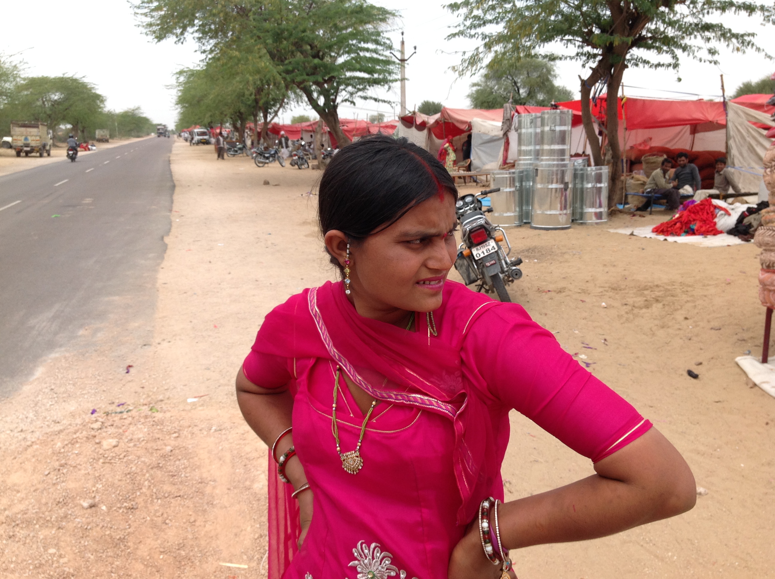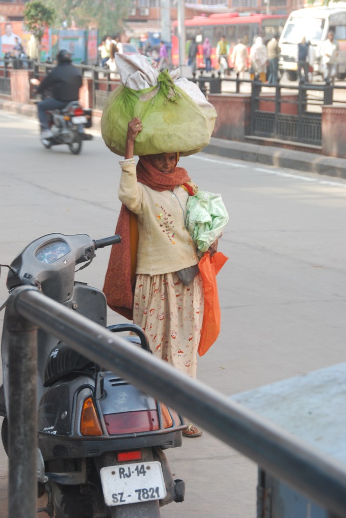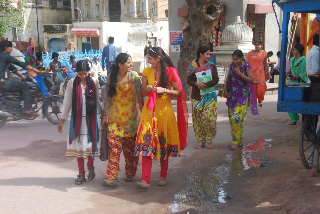 I so admired the beautiful Rajasthani women in their colourful clothing. While India has its fair representation of female doctors, lawyers, engineers, architects, teachers and other university educated professionals, the women that I encountered on this trip were usually simple working women. They were the cleaners in the temples, the workers in the fields, the vendors selling their wares, the ladies carrying huge burdens on their heads and often labourers clearing rubble or working water wheels. Their clothing was always vibrant and, in the most difficult of circumstances, usually immaculately clean. I loved their clothing so much, in fact, that when I saw Photographs of traditional Rajasthani wedding attire with full red skirts heavy with intricately hand sewn threads of gold, I was determined to find one for my own wedding later in the year. Our driver, Mahendra, appeared to be horrified at the very idea that I would want a previously worn antique. He kept trying to steer me towards the more modern and more garish varieties, often in bright green or yellow with machine sewn flimsy gold thread.