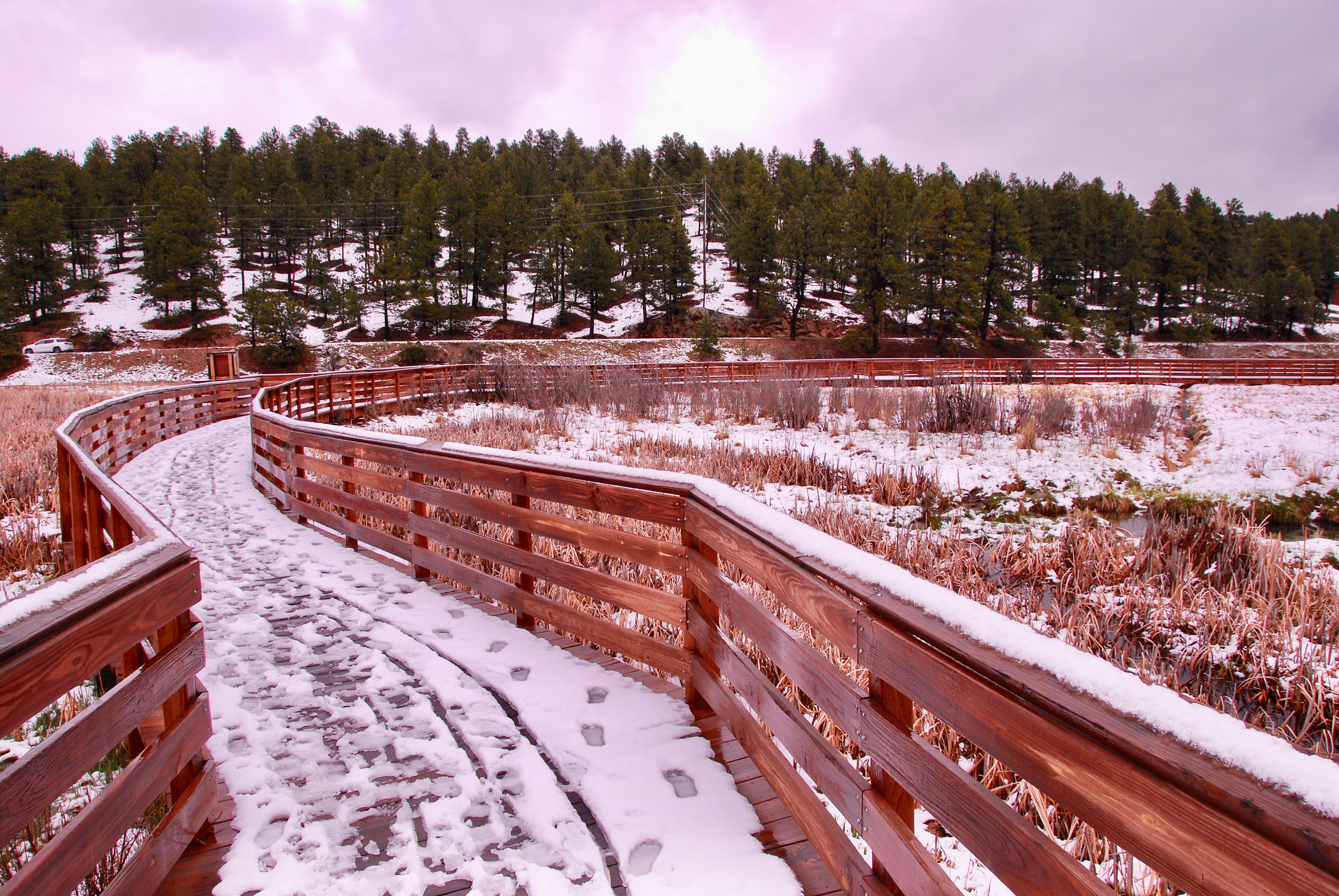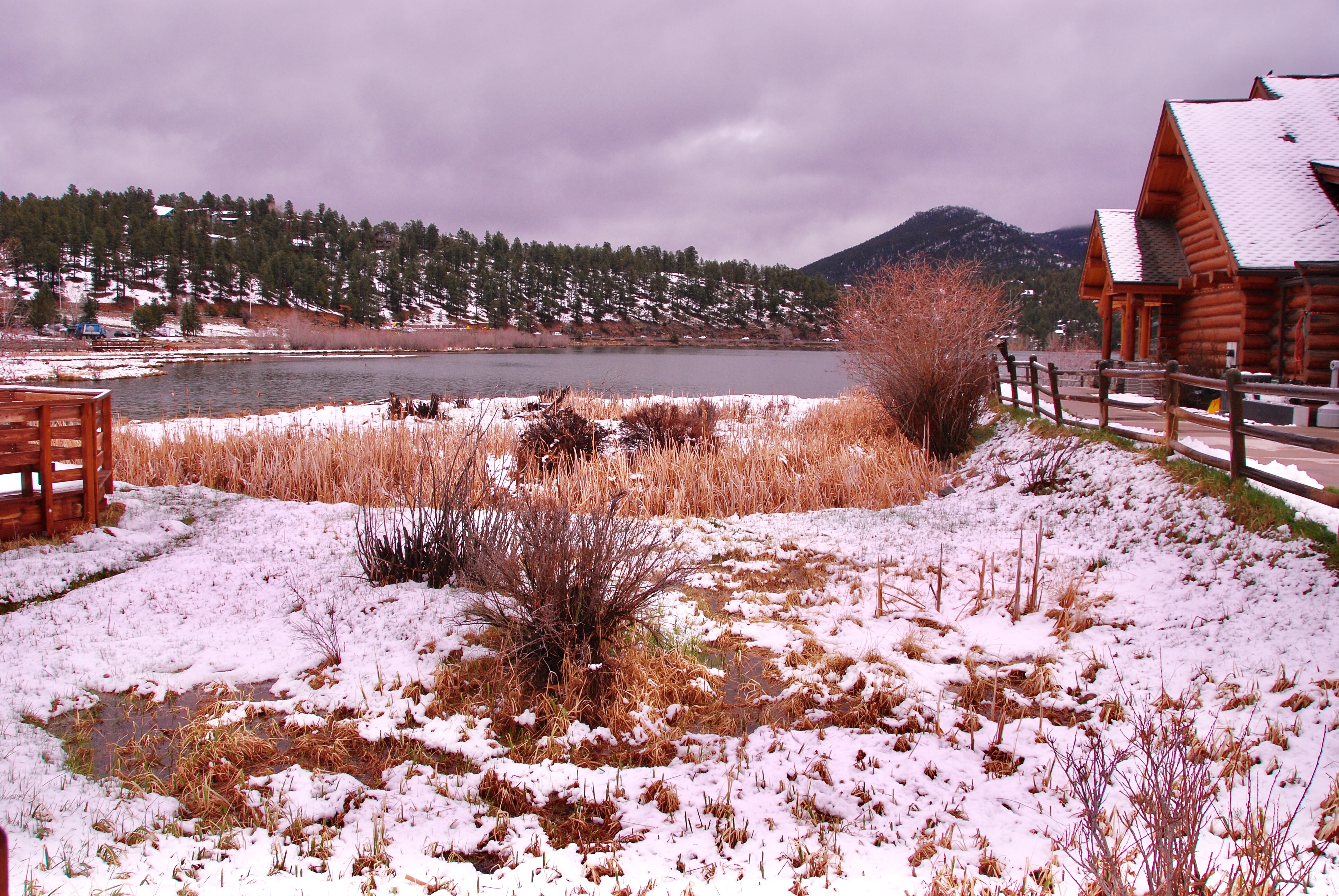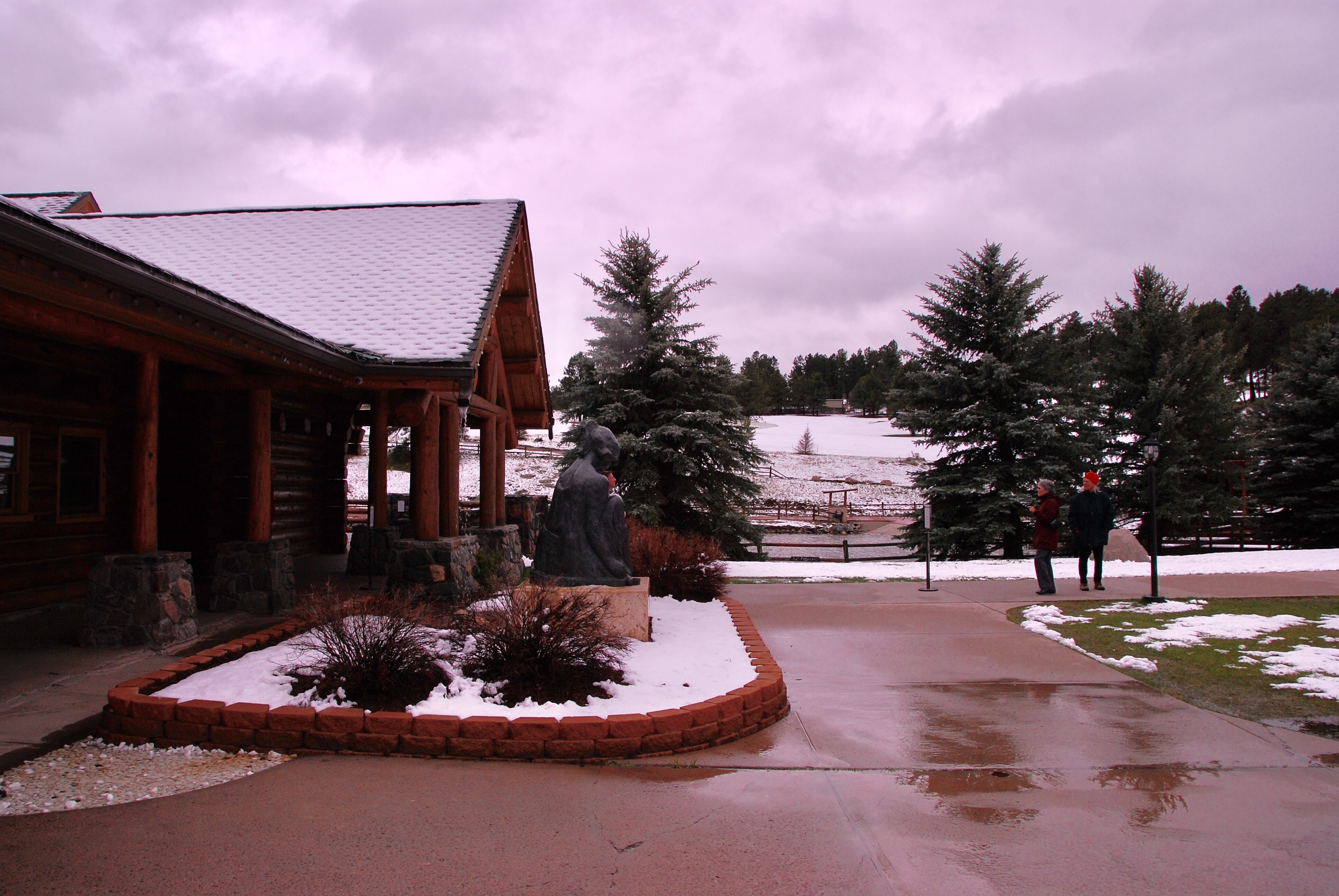 Back at the hotel after dark, we ate a light meal of charcuterie and a cheese platter in the Blue Heron Lounge, accompanied by a refreshing salad. Then, tired from the long day of walks and rafting, we retired to our warm cottage. The weather up to this point had provided warm, clear sunny days, chilling down noticeably in the evenings. The forecast was for snow (at least in Yellowstone), but we suspected we’d wake to rain next morning. But, to our surprise, we opened our curtains to see soft snow falling over the wetlands and the mountains hidden from view in the mist. We’ve been warned that the roads into Yellowstone could be closed without warning if the weather turns. That might prevent us getting in, or worse, see us being stranded in the park, unable to get out! Although everyone says the road clearing machines keep things open as far as it’s possible.